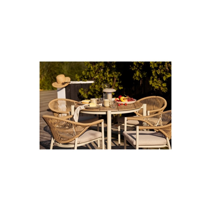Odkryj piękno posiłków na świeżym powietrzu dzięki stołowi jadalnemu Lumpur, stworzonemu tak, aby harmonizować naturę i funkcjonalność. Wykonany z akacji, ten stół jest idealnym towarzyszem Twojej przestrzeni zewnętrznej. Stół Lumpur ma elegancki okrągły kształt o imponującej średnicy 120 cm, co czyni go optymalnym miejscem do spotkań z przyjaciółmi i...