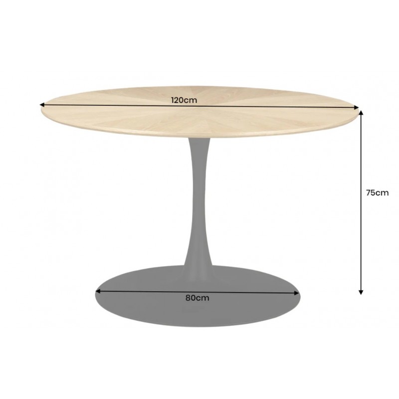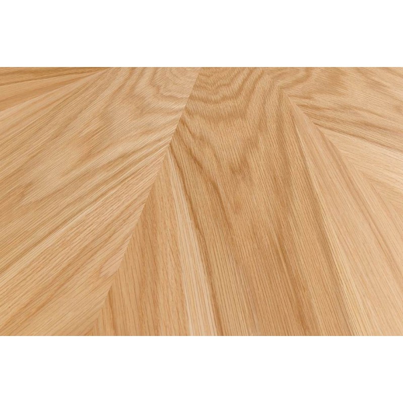 | Wykończenie blatu | blat wyróżnia się dekoracyjnym układem słojów i sęków schodzących się ku środkowi, tworząc wzór geometryczny przypominający naturalny dąb. Maksymalne obciążenie: ok 80 kg. |
