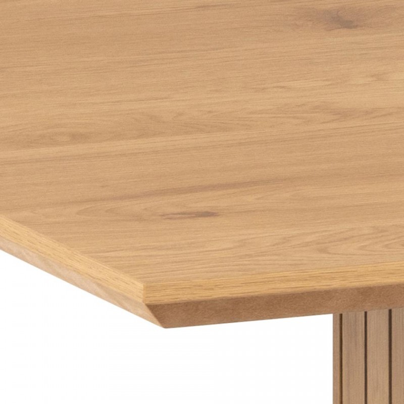 Już na pierwszy rzut oka ten prostokątny stół jadalniany zachwyca swoim wyglądem. Prosta forma, pionowe listwy i odcień dzikiego dębu nadają mu nowoczesny, a zarazem ciepły charakter. To idealny punkt centralny każdej współczesnej jadalni, który sprawi, że wspólne posiłki staną się przyjemnym i stylowym doświadczeniem. Stół bez trudu pomieści do 6 osób.