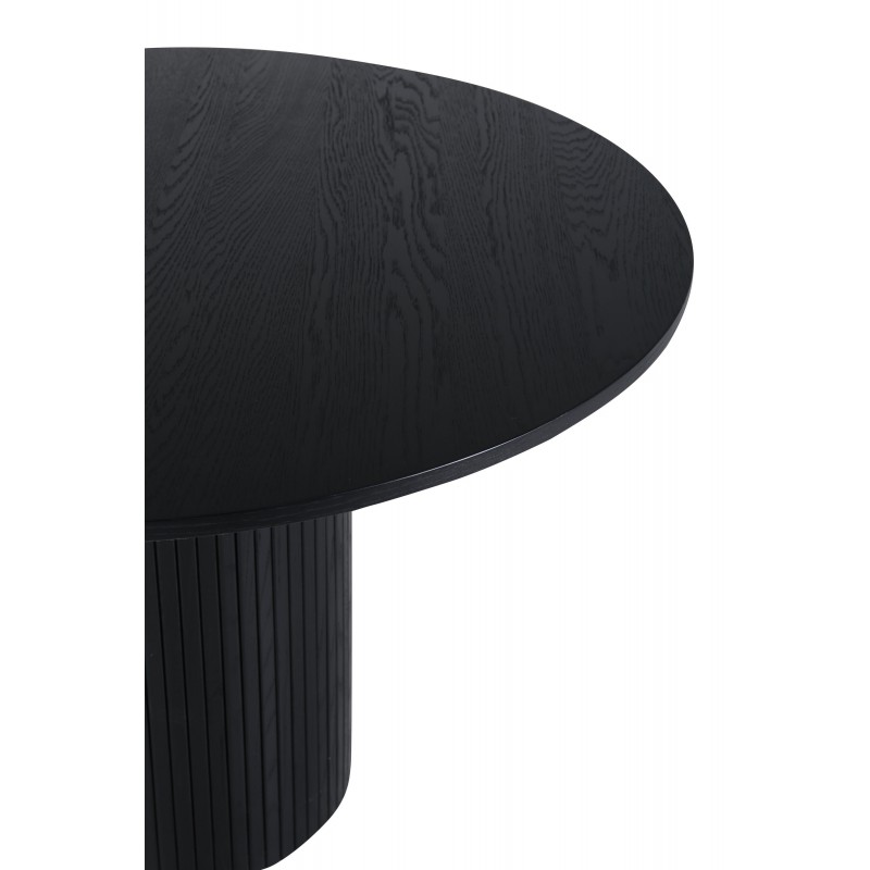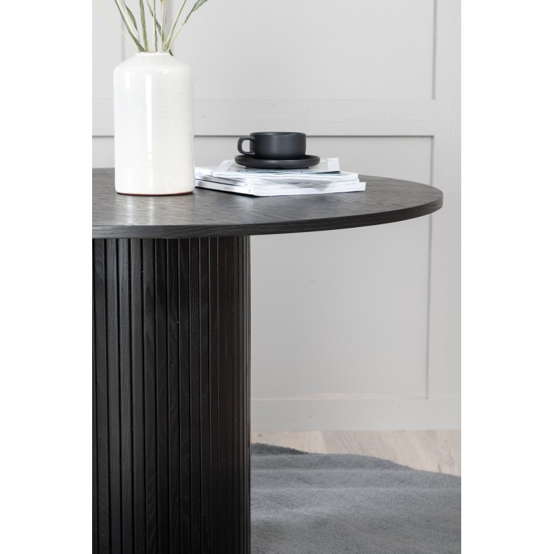 Bianca tworzy stylowy przyciągacz wzroku, który robi wrażenie! Ten owalny stół jadalny w jednolitym czarnym kolorze ma nowoczesny design z blatem z płyty MDF i solidną ramą o żebrowanym wzorze, która daje wrażenie stabilności. Podnieś wystrój wnętrza w salonie i zaproś na wiele przyjemnych posiłków! Porady dotyczące pielęgnacji: płyty MDF, które są...