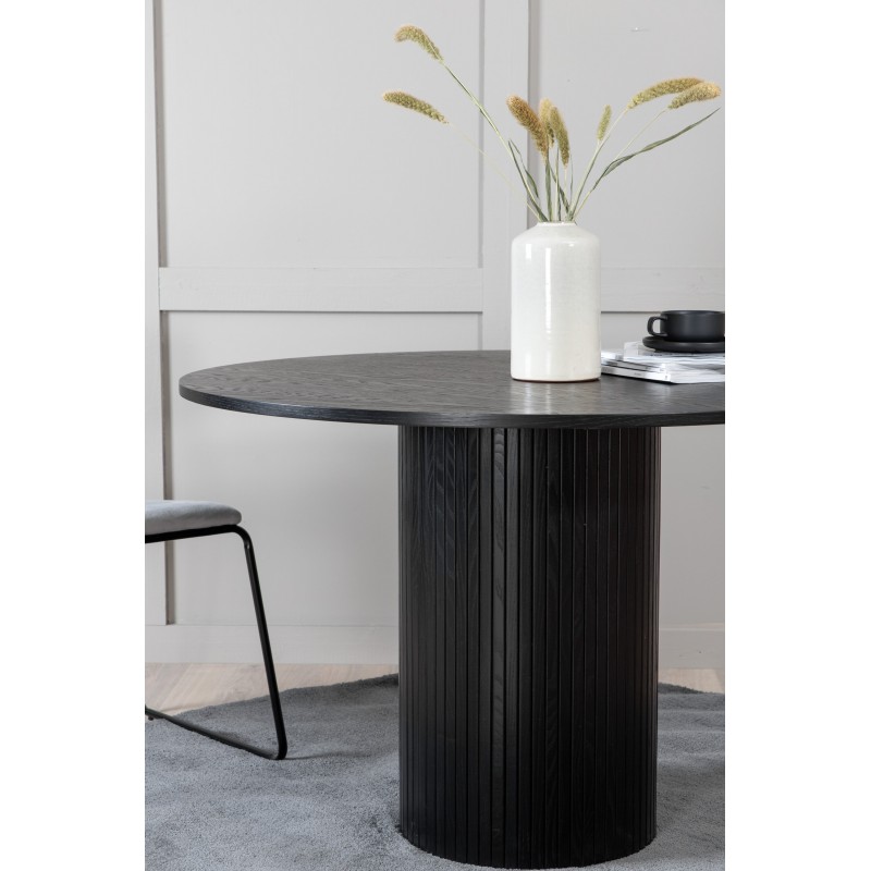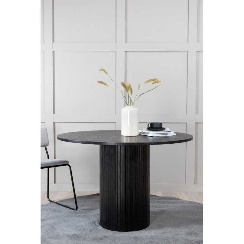 Stwórz wspaniałą społeczność wokół naszego okrągłego stołu jadalnego Bianca w modnym designie! Blat stołu wykonany jest z płyty MDF i ma cylindryczną ramę o solidnej konstrukcji i żebrowanym wzorze. Konsekwentnie czarny kolor jest ponadczasowy, a jednocześnie stylowy i łatwy do dopasowania do innych dekoracji. Podnieś poczucie dekoracji i pozwól, aby czas stał się jednym z dzisiejszych najważniejszych momentów! Porady dotyczące pielęgnacji: płyty MDF, które są malowane lub lakierowane, są wrażliwe na zarysowania i uszkodzenia. Dlatego należy uważać na płyty, aby tego uniknąć. Powierzchnie malowane lakierem z kolorowym pigmentem lub farbą mają pigmentację, która zapewnia niekryjącą przezroczystą powierzchnię.
