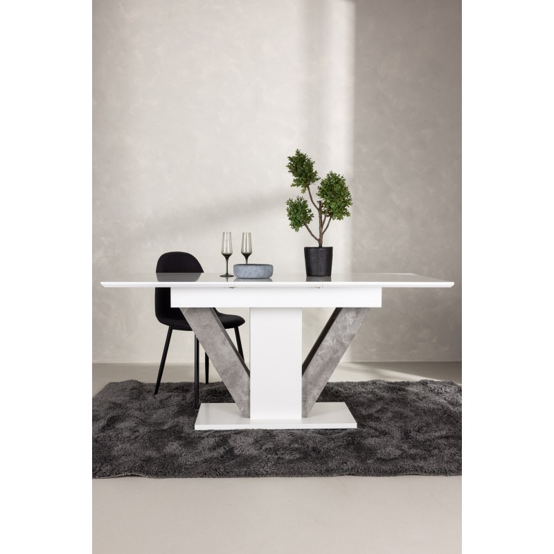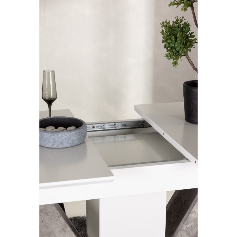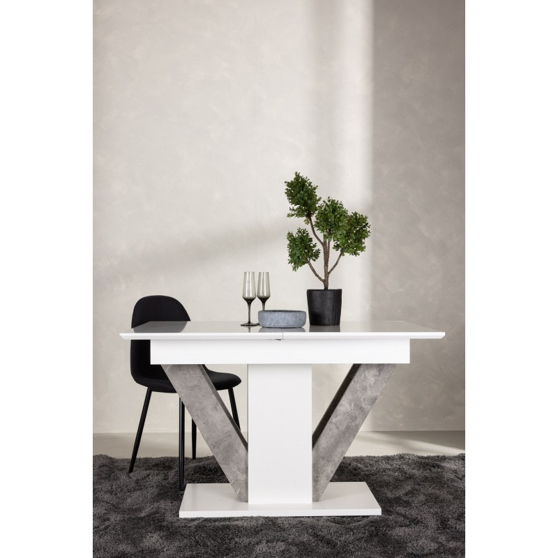 Wszystko tkwi w szczegółach - elegancki i pompatyczny stół jadalny z serii Disa to dokładnie to, czego potrzebuje Twój salon! Blat stołu wykonany jest z płyty MDF, a podwozie jest solidne i centralnie umieszczone z detalami z szarego MDF. Stół jest rozkładany, co sprawia, że nadaje się zarówno na małe, jak i duże przyjęcia. Zaproś na wiele towarzyskich chwil!
