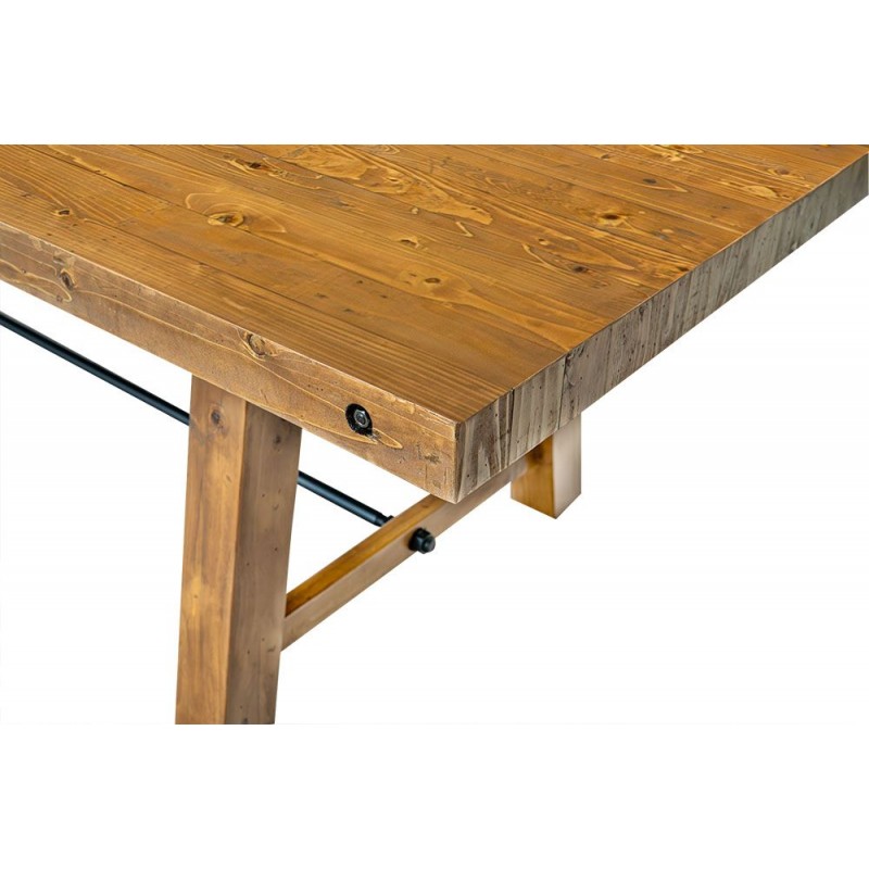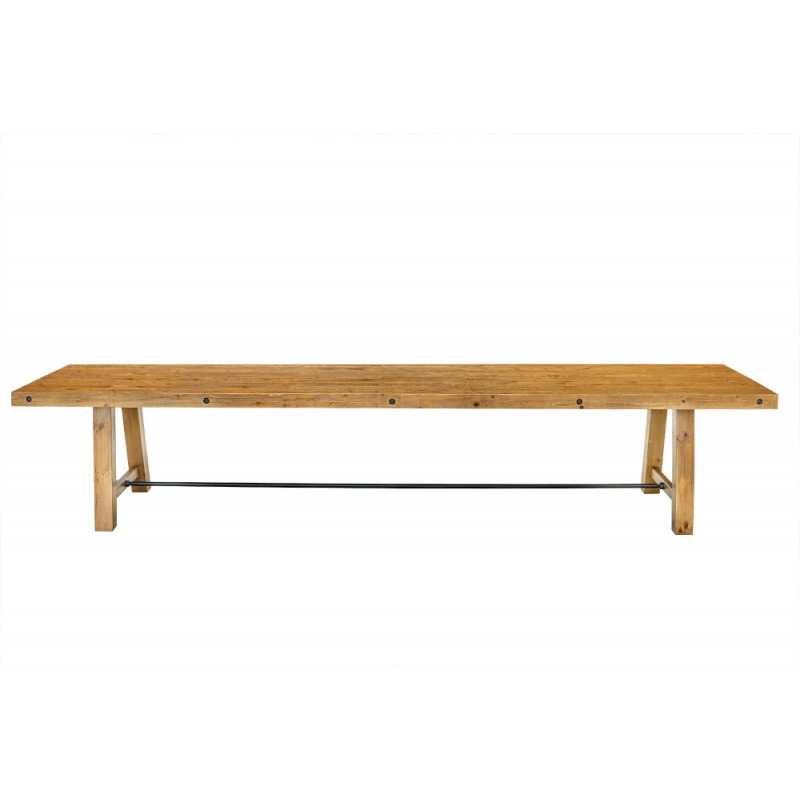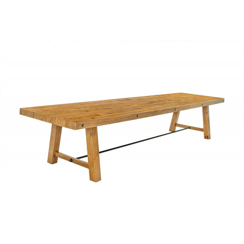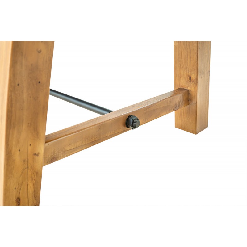 Nowoczesny stół FINCA wykonany został w całości z litego drewna sosnowego, pochodzącego z recyklingu. Blat wykonano z łączonych desek ozdobionych po bokach surowymi śrubami, przez co prezentuje się wyjątkowo naturalnie uwydatniając styl industrialny. Wykonany jest z wyjątkową precyzją, na którym została zachowana oryginalna struktura drewna w postaci sęków. Stół osadzono na solidnej stabilnej drewnianej podstawie, którą dodatkowo wzmocniono czarnym metalowym podnóżkiem. Stół FINCA sprawdzi się znakomicie w każdym salonie oraz jadalni, gdzie doda wnętrzu charakteru i niesamowitego stylu oraz stanie się centralnym meblem pomieszczenia, przy którym czas może spędzić cała rodzina. Ponadto w każdym przestronnym wnętrzu bez wątpienia stanie się on nie tylko funkcjonalnym meblem, ale także przepiękną dekoracją dodającą pomieszczeniu niesamowitego wyglądu. Efekt końcowy połączenia drewnianego blatu oraz podstawy jest jednolity dzięki czemu idealnie sprawdzi się zarówno w salonach w stylu industrialnym jak i retro.