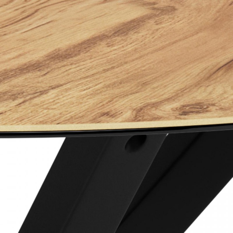 STÓŁ HEAVEN 220X100 CM DZIKI DĄB Nowoczesny owalny stół idealnie pasujący do jadalni oraz salonu, postawiony jest na matowych czarnych metalowych nogach w kształcie gwiazdy. Olejowany blat o grubości 4 cm, wykonany został z fornirowanej płyty MDF w kolorze dzikiego dębu. Charakteryzuje się on zachowaniem oryginalności słojów, sęków oraz naturalności...