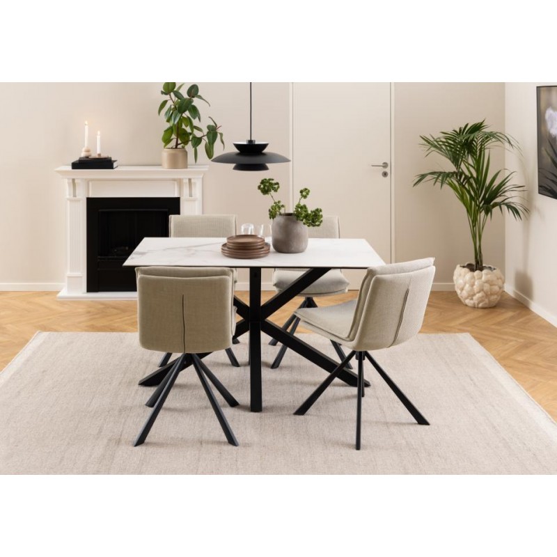 STÓŁ HEAVEN 200X100 CM CERAMIKA BIAŁA Nowoczesny stół do jadalni z prostokątnym blatem wykonany jest z ceramiki o grubości 1,2 cm, został on postawiony na czarnej matowej metalowej podstawie. Blat w kolorze białym imitujący marmur wyróżnia się swoją wyrazistością dzięki zastosowaniu na nim szarej nitki. Łatwy w utrzymaniu czystości blat dopełnia odporna...