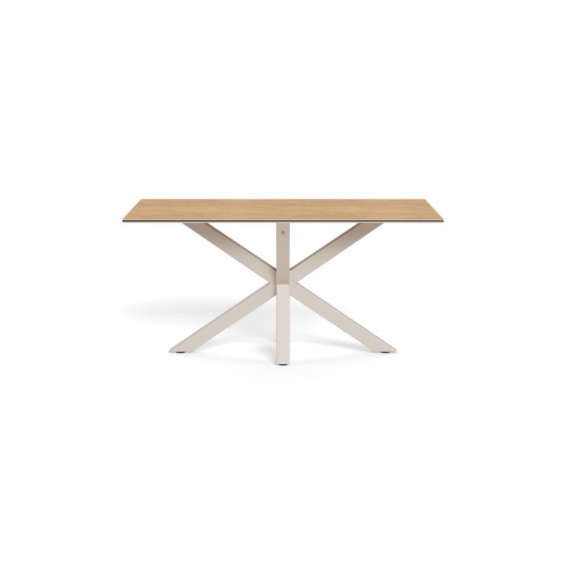 STÓŁ HEAVEN 160X90 CM CERAMINKA DZIKI DĄB Elegancki stół do jadalni w kolorze dzikiego dębu, którego blat wykonany został z ceramiki Fairbanks, a podstawa z metalu sprawdzi się zarówno w biurze, jak i domowej jadalni. Łatwy w utrzymaniu czystości blat, zaprojektowany z odpornej na ciepło ceramiki będzie służył na długie lata. Nogi w kształcie pająka...