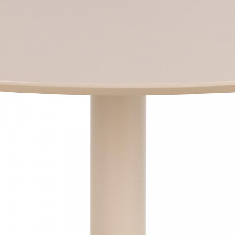 Ten okrągły stół jadalniany o minimalistycznym designie to idealne rozwiązanie dla mniejszych przestrzeni – bez trudu pomieści cztery osoby, zachowując przy tym lekkość i elegancję formy. Beżowy blat nadaje mu wyrafinowany charakter, a stabilna, trąbkowata podstawa ze stali doskonale go uzupełnia. Harmonijnie zaprojektowany i ponadczasowy, sprawdzi się zarówno podczas codziennych posiłków, jak i spotkań w gronie bliskich.