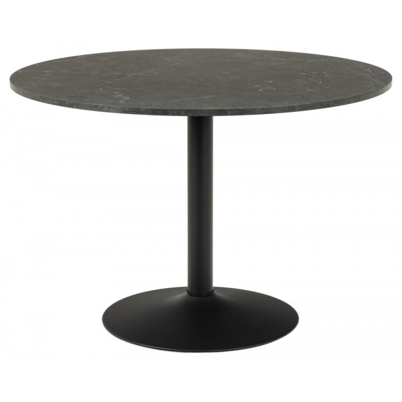 Ten okrągły stół jadalniany o minimalistycznym designie to idealne rozwiązanie dla mniejszych przestrzeni – bez trudu pomieści cztery osoby, zachowując przy tym lekkość i elegancję formy. Blat w czarnym, marmurowym wykończeniu nadaje mu wyrafinowany charakter, a stabilna, trąbkowata podstawa ze stali doskonale go uzupełnia. Harmonijnie zaprojektowany i ponadczasowy, sprawdzi się zarówno podczas codziennych posiłków, jak i spotkań w gronie bliskich.
