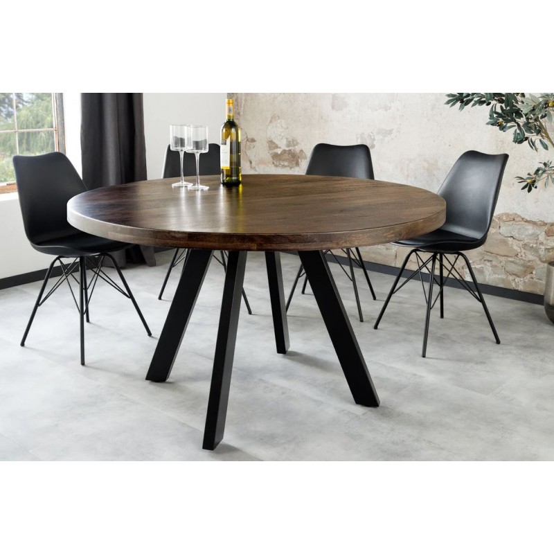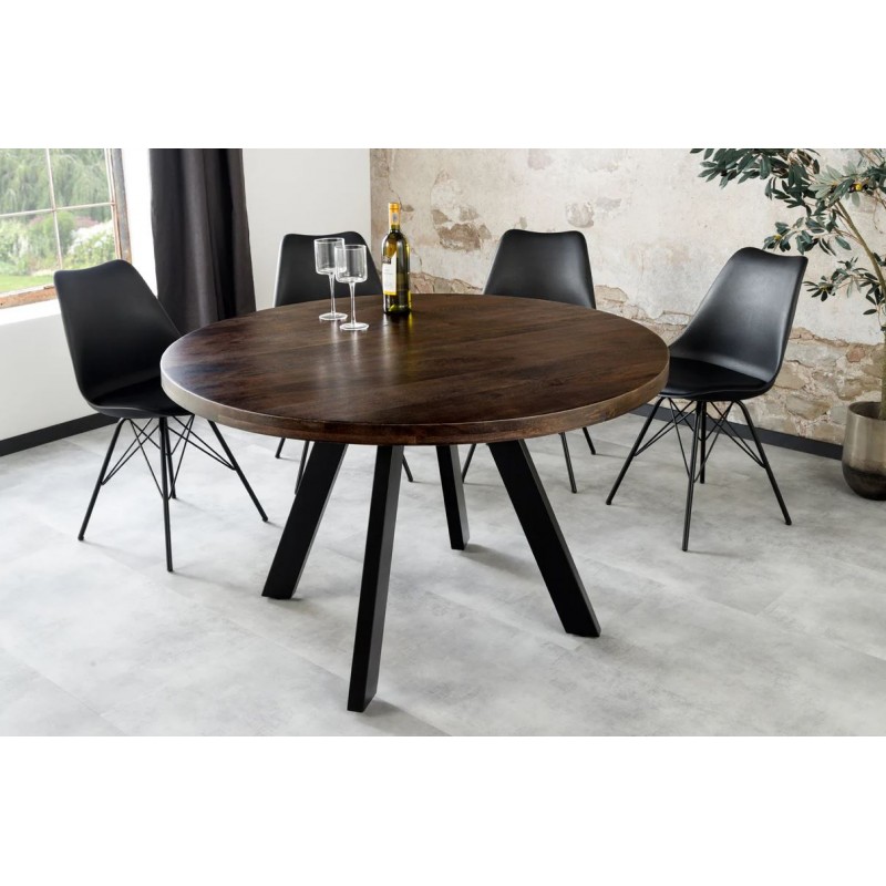 Stół IRO CRAFT to idealne rozwiązanie do każdego większego wnętrza w stylu nowoczesnym czy industrialnym, gdzie dzięki swojej formie i wymiarom doda charakteru i podkreśli wygląd pomieszczenia. Robiący ogromne wrażenie okrągły blat stołu został wykonany z litego drzewa mango w kolorze brązowo-szarym, który zapewnia mu niezwykłą praktyczność oraz funkcjonalność, a dzięki przepięknej barwie bez wątpienia doda wnętrzu niesamowitego wykończenia. Mebel ten wykonany jest z największą dokładnością i dbałością o każdy detal, co można zauważyć na zachowanej strukturze drewna w postaci sęków i słojów, przez co całość prezentuje się zjawiskowo. Blat stołu został osadzony na stabilnej smukłej metalowej podstawie w kolorze czarnym, która uzupełnia i dodaje mu ciekawego wyglądu. Efekt końcowy połączenia brązowego drewna oraz czarnej metalowej podstawy jest jednolity dzięki czemu idealnie sprawdzi się zarówno w salonach w stylu industrialnym jak i nowoczesnym. Stół ten odnajdzie się znakomicie w każdej przestronnej jadalni oraz salonie gdzie bez wątpienia stanie się nie tylko funkcjonalnym meblem, ale także przepiękną dekoracją dodającą wnętrzu niesamowitego oryginalnego wyglądu.