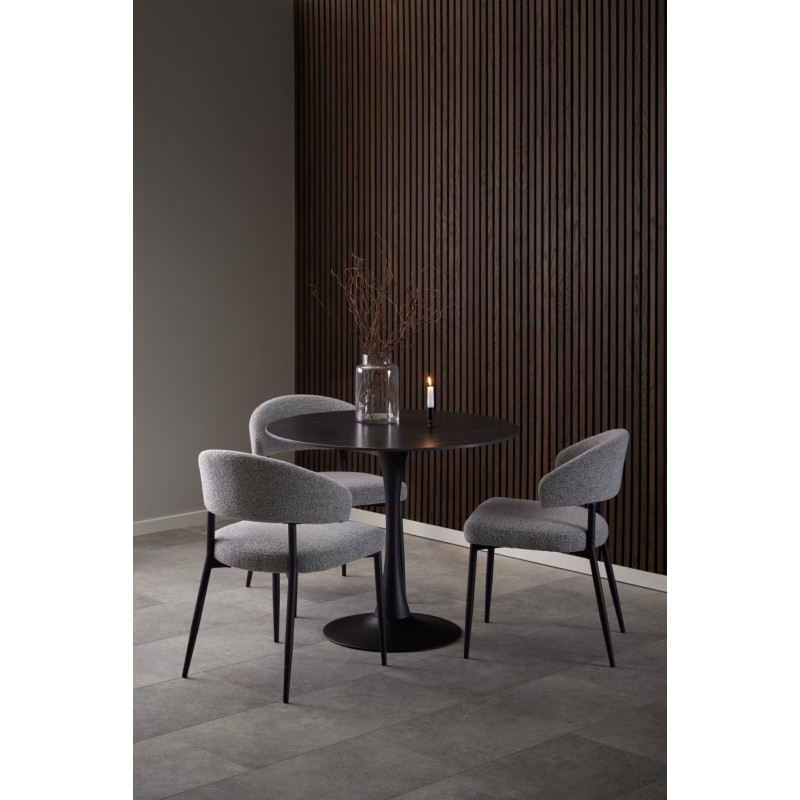 STÓŁ MALTA 90 CM CERAMIKA SZARA- Ø90x75CM Okrągły stół jadalny Malta z szarym blatem z polerowanej ceramiki Batis i czarną, stalową podstawą w kształcie trąbki wnosi nowoczesny styl do jadalni. Smukły, łatwy w pielęgnacji blat z odpornej na ciepło i zarysowania ceramiki oraz stabilna podstawa tworzą funkcjonalny i elegancki mebel idealny na wyjątkowe...