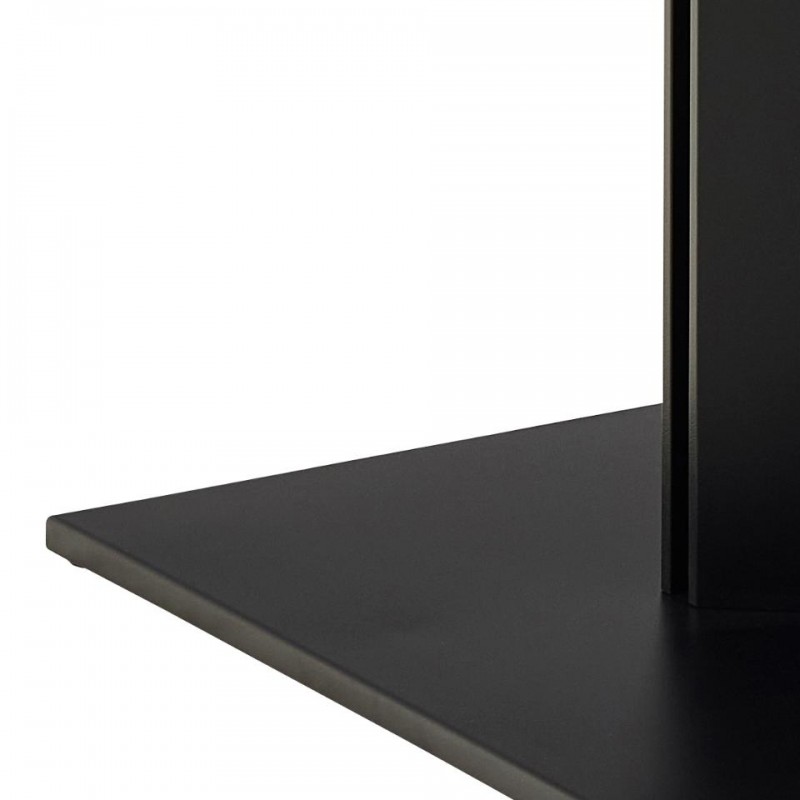 Centralnie umieszczona podstawa w formie masywnej kolumny, wykonana z czarnej stali malowanej proszkowo, zapewnia doskonałą stabilność i podkreśla nowoczesny charakter mebla. Taka konstrukcja nie tylko przyciąga wzrok, ale także gwarantuje wygodę podczas siedzenia, oferując swobodę ustawienia krzeseł. Ciemna kolorystyka stołu dodaje wnętrzu elegancji i sprawia, że doskonale komponuje się zarówno z minimalistycznymi, industrialnymi, jak i bardziej luksusowymi aranżacjami.