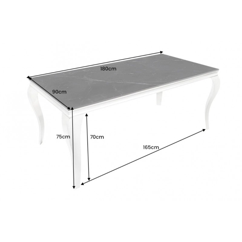 STÓŁ SZKLANY MODERN BAROCK 180X95 CM MARMUR Nowoczesny stół, postawiony na srebrnych nogach wykonanych ze stali nierdzewnej. Blat wykonany z białego szkła hartowanego imitującego marmur, o grubości około 1 cm. Mebel ten idealnie odzwierciedla styl Glamour. Ten model stołu występuje w różnych wymiarach i kolorach - patrz produkty powiązane.W serii BAROCK...