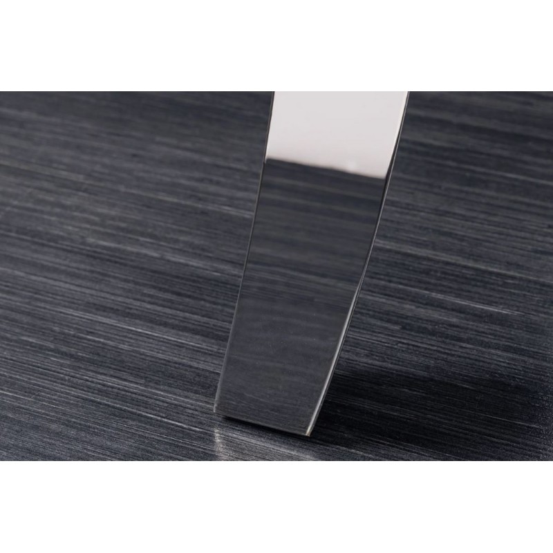 KONSOLA MODERN BAROCK 145X45 CM ANTRACYT Nowoczesna konsola MODERN BAROCK, która została osadzona na stabilnej prostokątnej stalowej konstrukcji w kolorze srebrnego chromu. Jej najbardziej przyciągającym uwagę elementem jest prostokątny blat o grubości 1,0 cm, wykonany ze spieku kamiennego wyglądem przypominającego marmur, którego kolorystykę przełamano...