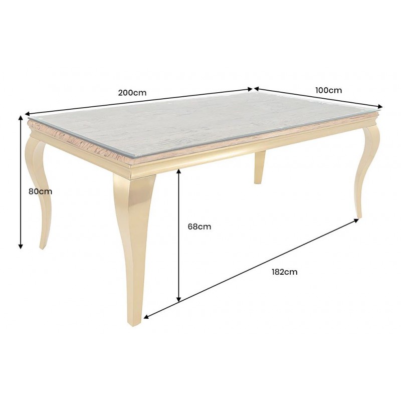 STÓŁ MODERN BAROCK BARRACUDA 200X100 CM Stół MODERN BAROCK BARRACUDA to idealne rozwiązanie do każdej jadalni oraz salonu i wnętrza w stylu nowoczesnym, gdzie mebel ten dzięki swojej unikatowej formie przykuje uwagę każdego, a także nada wnętrzu charakteru i naturalnego wykończenia. W górnej części składa się z przezroczystego blatu wykonanego ze szkła...