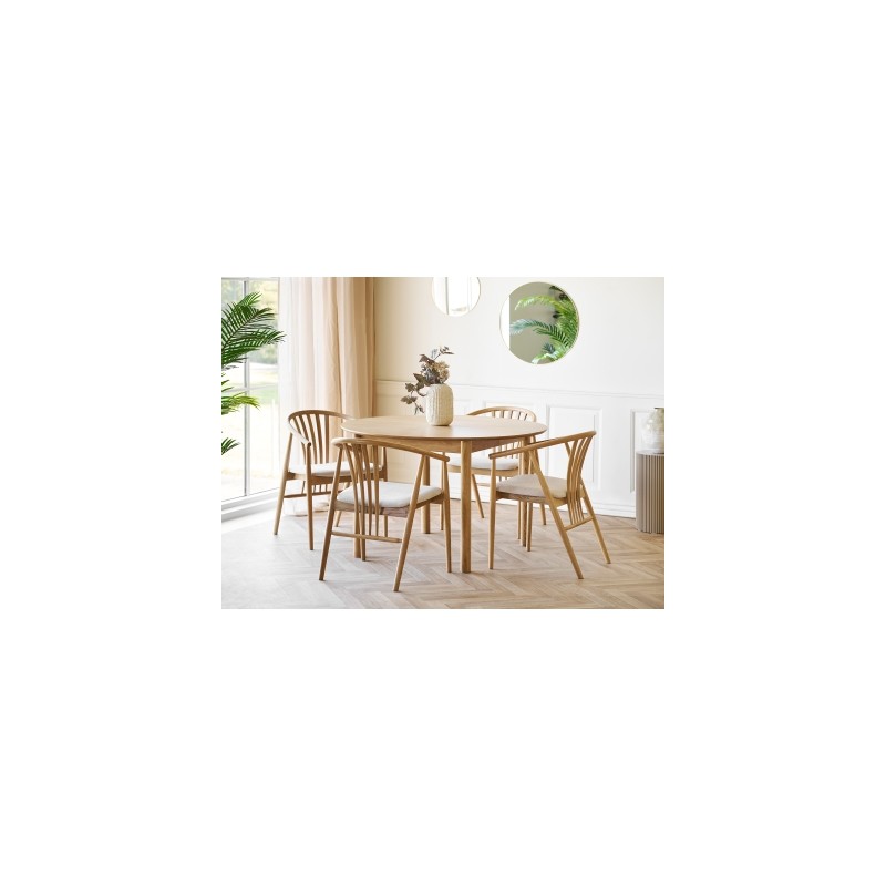 Stół jadalny Bundaberg to elegancki i funkcjonalny mebel, który doskonale sprawdzi się zarówno w codziennym użytkowaniu, jak i podczas spotkań w większym gronie. Blat wykonany z wysokiej jakości forniru dębowego nadaje stołowi naturalny, ciepły charakter oraz zapewnia trwałość na lata. Model Bundaberg posiada okrągły blat o średnicy 120 cm, który można łatwo powiększyć dzięki dołączonym płytom poszerzającym. Po rozłożeniu stół osiąga długość 170 cm lub 220 cm, umożliwiając wygodne ugoszczenie większej liczby osób. Stabilna konstrukcja oraz staranne wykonanie sprawiają, że stół jest nie tylko praktyczny, ale również estetyczny i ponadczasowy.