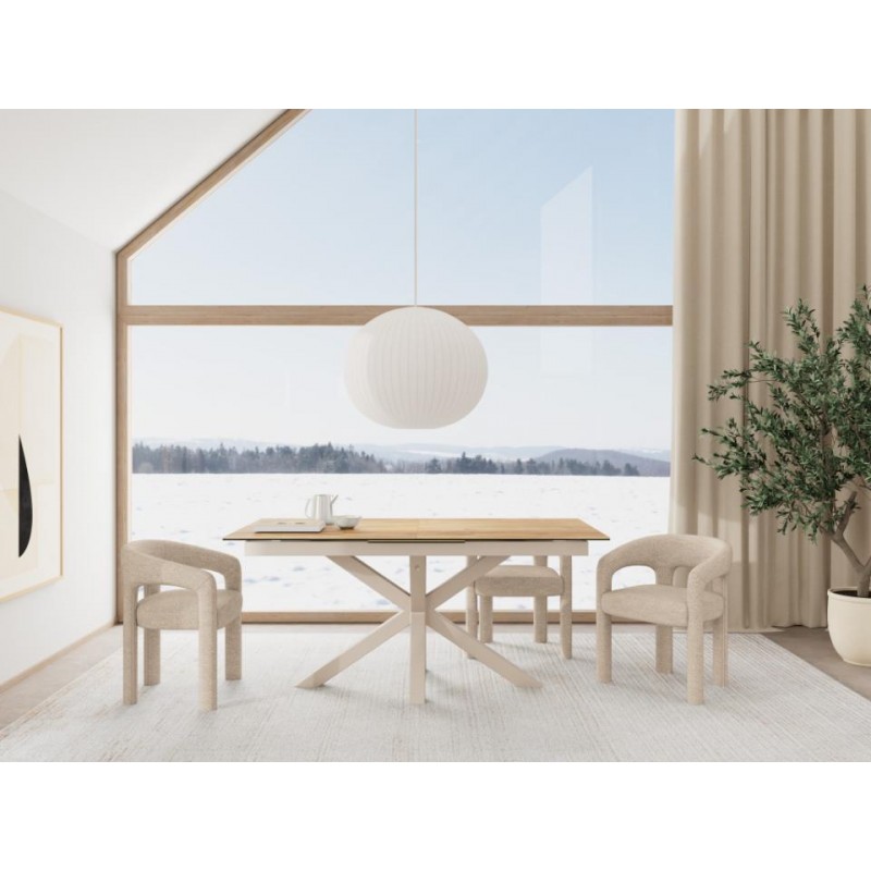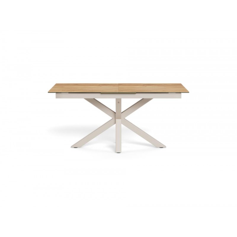 Prostokątny stół Heaven zaprojektowany został głównie z myślą o jadalni w stylu nowoczesnym czy skandynawskim, gdzie doda przestrzeni charakteru i szyku, a także swoją formą zachwyci każdego. Blat stołu o grubości 1,2 cm wykonany jest z ceramiki imitującej dziki dąb, odpornej na ciepło oraz zarysowania. Mebel został osadzony na solidnej szarej metalowej podstawie, a nogi w kształcie pająka zostały zaprojektowane w taki sposób, aby nie stanowiły problemu ułożenia krzeseł podczas siedzenia. Całość wspaniale komponuje się z podstawą utrzymaną w szarej tonacji, a efekt końcowy połączenia kolorów blatu oraz podstawy jest fenomenalny, dzięki czemu idealnie sprawdzi się również w salonach w stylu industrialnym.