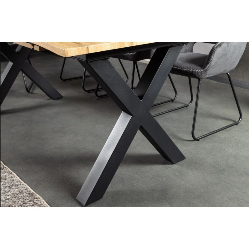 Stół WILD to mebel, który bez wątpienia zachwyci swoją praktycznością oraz formą. Ten robiący ogromne wrażenie rozkładany stół doskonale wpisuje się w aranżacje nowoczesnych salonów i jadalni, dodając im wyjątkowego stylu. Szeroki, solidny blat o grubości 25 mm wykonany został z płyty MDF, która dla nadania wyrazistości tego stołu została oklejona w taki sposób, aby zachować autentyczność wyglądu dzikiego dębu. Mebel ten dzięki odwzorcowaniu oryginalności słojów, sęków oraz naturalnej krawędzi drzewa prezentuje się zjawiskowo. Dzięki funkcji rozkładania, jego powierzchnię można w łatwy i szybki sposób powiększyć przy pomocy praktycznej przedłużki, dostosowując wielkość stołu do liczby gości lub aktualnych potrzeb. Całość osadzono na stabilnej czarnej metalowej podstawie, która dodaje konstrukcji surowego wykończenia i designerskiego wyrazu. Ogromną zaletą jest nie tyle funkcjonalność jak również duża wytrzymałość oraz łatwość czyszczenia, która wyróżniają się swoją naturalnością, kolorem oraz strukturą sprawiając przy tym, że każdy egzemplarz stołu jest unikatowy. Efekt końcowy połączenia blatu z płyty MDF oraz czarnej metalowej podstawy jest fenomenalny, dzięki czemu całość mebla stanie się centralnym punktem wnętrza. Jego zjawiskowa forma oraz detale dopełni doskonale komponują się z aranżacjami industrialnymi, nowoczesnymi, a nawet rustykalnymi, wnosząc tym samym do pomieszczenia elegancję, harmonię i niepowtarzalny charakter.