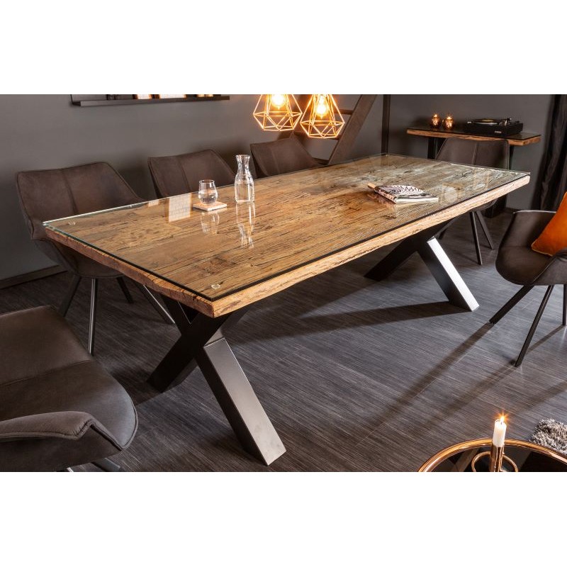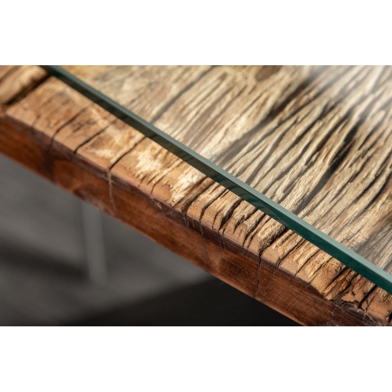 STÓŁ BARRACUDA II 220X100 CM TEAK Nowoczesny duży stół BARRACUDA to idealne rozwiązanie do każdej jadalni i salonu urządzonego w stylu industrialnym oraz nowoczesnym, gdzie mebel ten dzięki swojej unikatowej formie przykuje uwagę każdego, a także nada wnętrzu charakteru i naturalnego wykończenia. Stół w górnej części składa się z przezroczystego blatu...