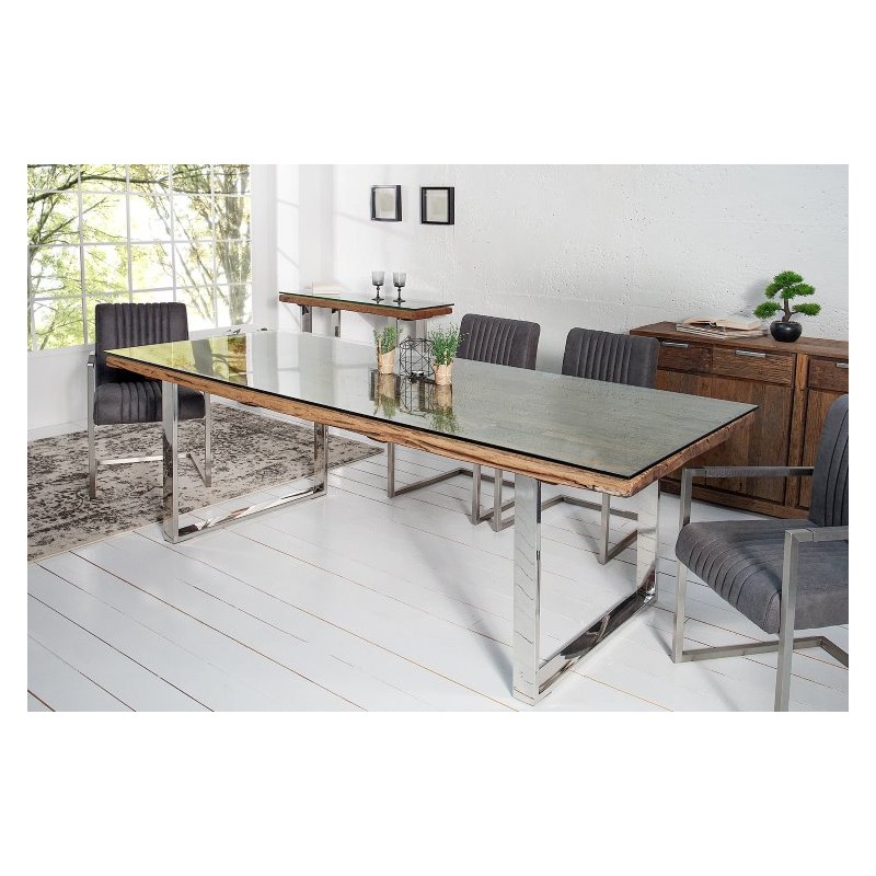SZKLANY BLAT STOŁU EUPHORIA BARRACUDA 180CM Stół EUPHORIA to idealne rozwiązanie do każdego większego pomieszczenia w stylu industrialnym czy nowoczesnym, gdzie stół ten dzięki swojej formie i rozmiarom przykuje uwagę każdego, a także nada wnętrzu charakteru i naturalnego wykończenia. Głównym atutem mebla jest jego niesamowity blat, a został on wykonany z...
