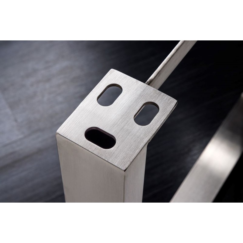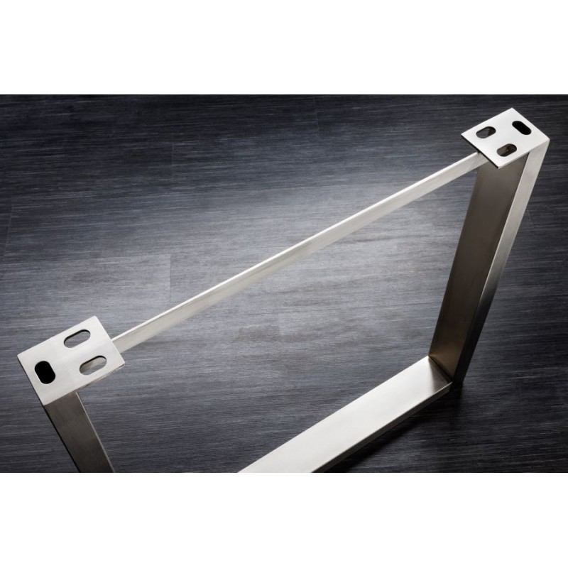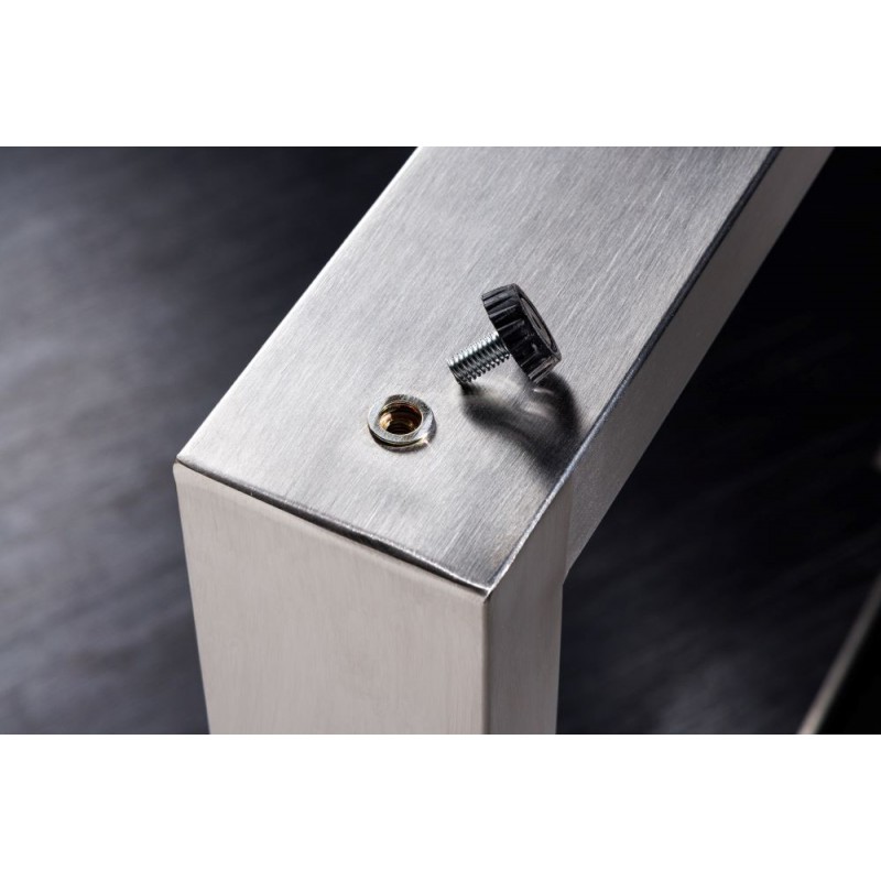 Elegancka podstawa w kształcie litery U, wykonana ze stali nierdzewnej w kolorze srebrnym, została zaprojektowana z myślą o blatach z kolekcji MAMMUT o różnych wymiarach. Ich stabilna i wytrzymała konstrukcja gwarantuje nie tylko bezpieczeństwo użytkowania, ale także długotrwałą trwałość, nawet przy intensywnym użytkowaniu. Uniwersalny charakter podstawy pozwala na zestawienie jej z dowolnym blatem z serii MAMMUT, tworząc nowoczesny i stylowy stół, który sprawdzi się zarówno w przestronnej jadalni, jak i salonie. To idealna propozycja dla osób, które cenią designerski wygląd w połączeniu z funkcjonalnością i jakością wykonania. Stół MAMMUT z tą podstawą stanie się nie tylko praktycznym elementem wyposażenia salonu w stylu nowoczesnym oraz industrialnym, ale również efektowną dekoracją, nadającą wnętrzu oryginalny i wyjątkowy charakter.