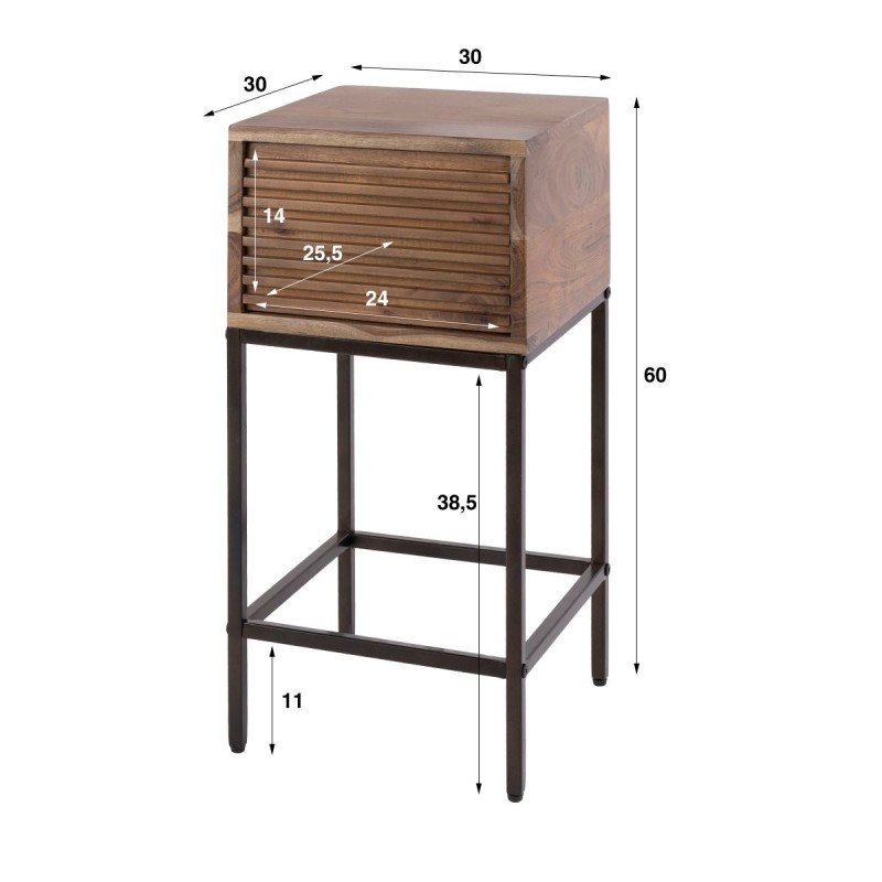 SZAFKA NOCNA MELEK 30X30 CM AKACJA Szafka nocna MELEK to idealne dopełnienie nowoczesnego wyposażenia sypialni w stylu industrialnym. Praktyczny blat o wymiarach 30x30 cm sprawia, że jest bardzo minimalistycznym oraz kompaktowym meblem. Posiada pojemną szufladę wykonaną z litego drewna akacji, która bez problemu zdoła pomieścić najpotrzebniejsze...