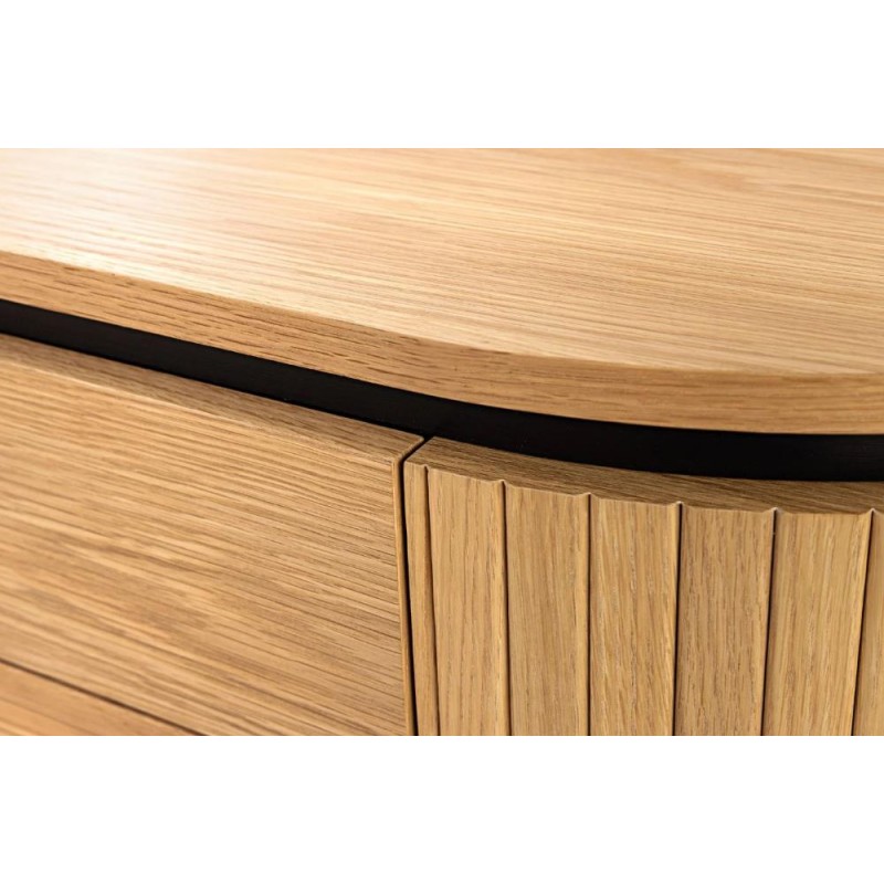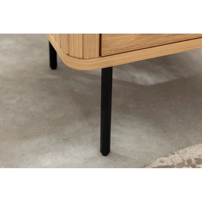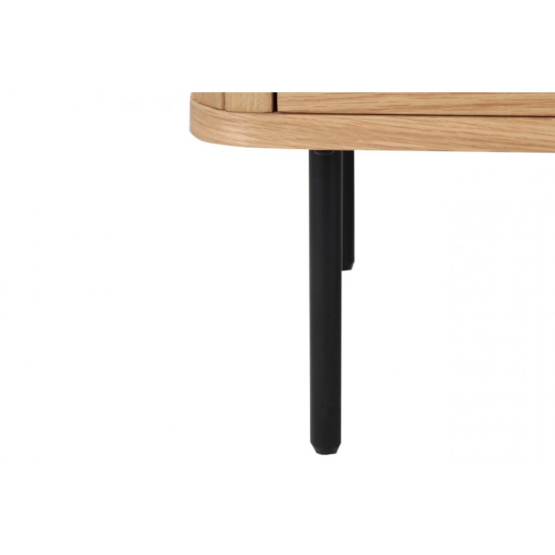 KOMODA ATELIER 160X40 CM DĄB Ta owalna elegancka komoda idealnie wpisze się nie tylko w klasyczne, ale także minimalistyczne nowoczesne wnętrze. Mebel ten wykonany został z płyty MDF oklejonej imitacją dębu, który został osadzony na stabilnej czarnej metalowej podstawie. Dzięki swojej smukłej linii całość tej szafki wspaniale komponuje się z podstawą...