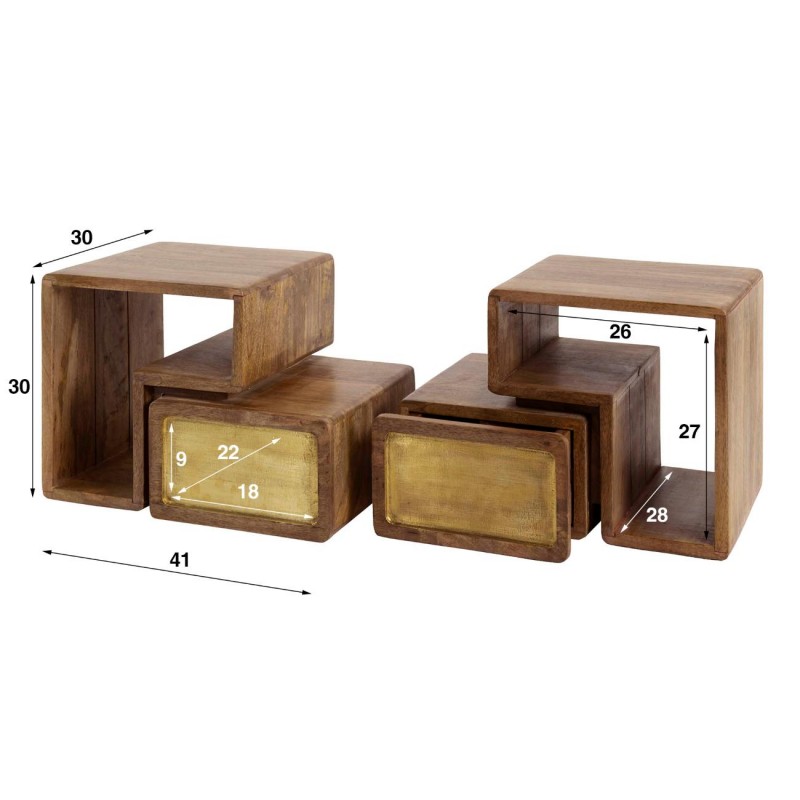 Ten niezwykle unikatowy zestaw szafek nocnych EFE bez wątpienia łączy w sobie naturalne lite drewno mango z wyjątkową elegancją. Posiada nowoczesny geometryczny design zarówno w konfiguracji jako szafka lewa i prawa. Można wieszać je na ścianie według własnego uznania, ponadto uwydatniono w nich naturalność, dzięki zachowanej oryginalnej strukturze drewna w postaci sęków i słojów. Dodatkowym ich atutem jest nie tylko wygląd, ale również funkcjonalność w postaci otwartej półki oraz pojemnej szuflady, która bez problemu zdoła pomieścić najpotrzebniejsze przedmioty codziennego użytku. Front szuflad, wykończony został w kolorze postarzanego mosiądzu, który subtelnie podkreśla ich niepowtarzalny styl. Szafki te mocuje się z łatwością do ściany za pomocą listwy wraz z 3 śrubami. Zostały zaprojektowane głównie z myślą o praktyczności i organizacji przestrzeni, a swoją elegancją, stylem oraz wyrazistością doskonale wzbogacą każdą sypialnię urządzoną w stylu nowoczesnym, dodając jej tym samym ciepła oraz naturalnego wykończenia.