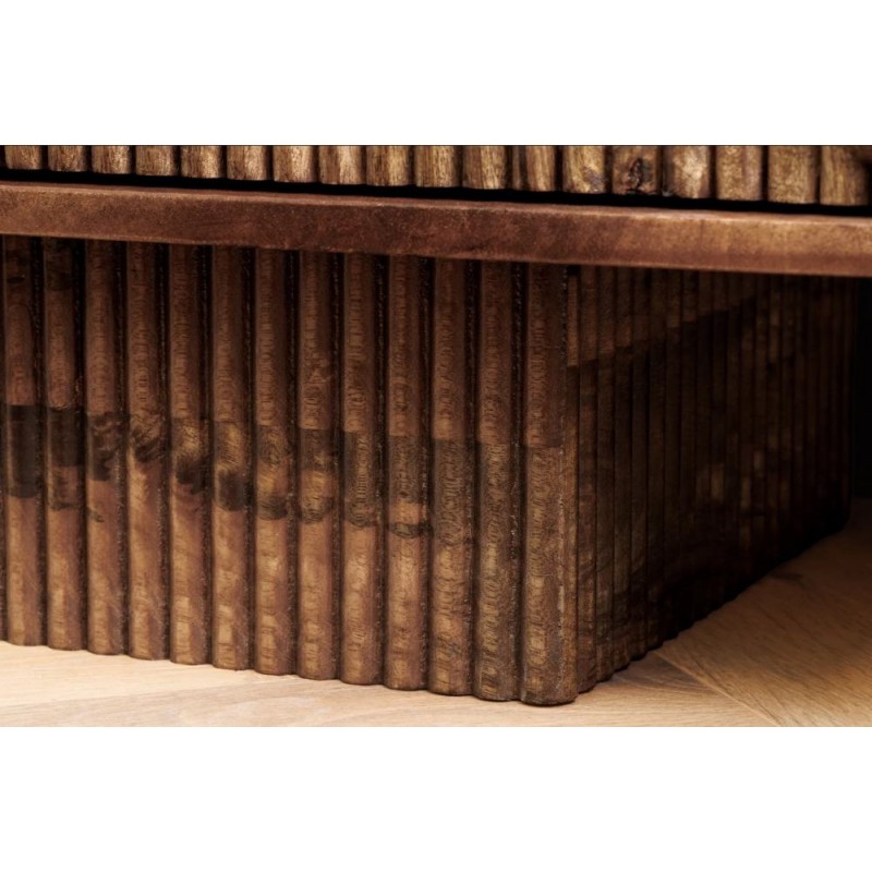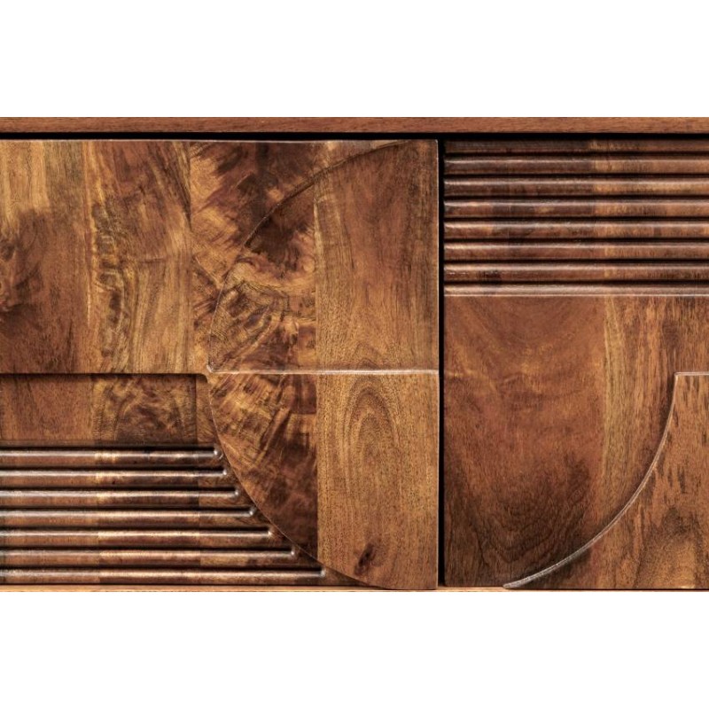 | Szczegóły wykończenia | front mebla wykonany z litego drewna mango, którego zdobi dekoracja lamelowa oraz optyczno-geometryczna 3D |