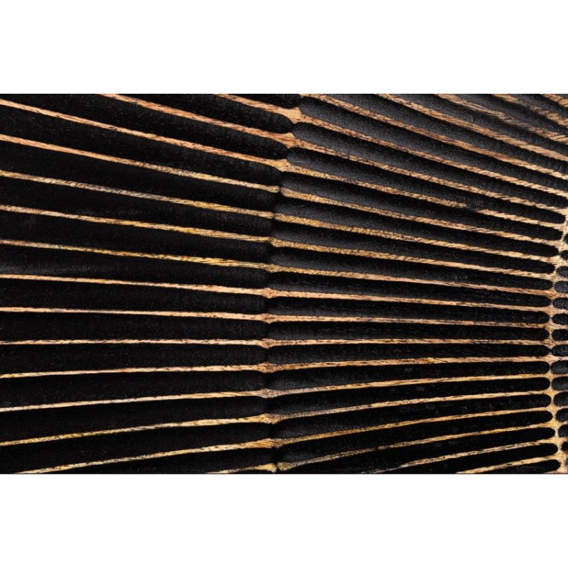 Szafka RTV GOLDEN SUNSET została wykonana w całości z litego drewna mango o barwie czarnej. Zaprojektowana jest niewątpliwie z dużą precyzją, dzięki zachowaniu naturalnej oryginalności drzewa zarówno słojów jak i sęków świetnie odzwierciedla styl nowoczesny. Bez wątpienia elementem robiącym największe wrażenie są frontowe drzwiczki ręcznie robione z unikatowym geometrycznym poprzecieranym złotym zdobieniem, dzięki któremu całość prezentuje się fenomenalnie i nadaje meblowi oryginalnego charakteru. Mebel ten jest bardzo pojemny, posiada trzy duże półki, które pomieszczą rzeczy codziennego użytku np: książki, dokumenty oraz urządzenia elektroniczne oferując tym samym dużą powierzchnię do przechowywania. Dodatkową zaletą tej szafki jest funkcjonalność, wytrzymałość oraz łatwość czyszczenia, ponadto wyróżnia się swoją wyrazistością, kolorem i strukturą powodując, że każdy egzemplarz jest unikatowy. Z łatwością dostosujesz ją do swoich potrzeb, a jej ścienne mocowanie pozwala zaoszczędzić miejsce na podłodze, dzięki czemu jest niezwykle praktyczna. Szafka ścienna GOLDEN SUNSET sprawdzi się znakomicie w każdym nowoczesnym salonie, gdzie stanie się nie tylko funkcjonalnym meblem, ale także przepiękną dekoracją.