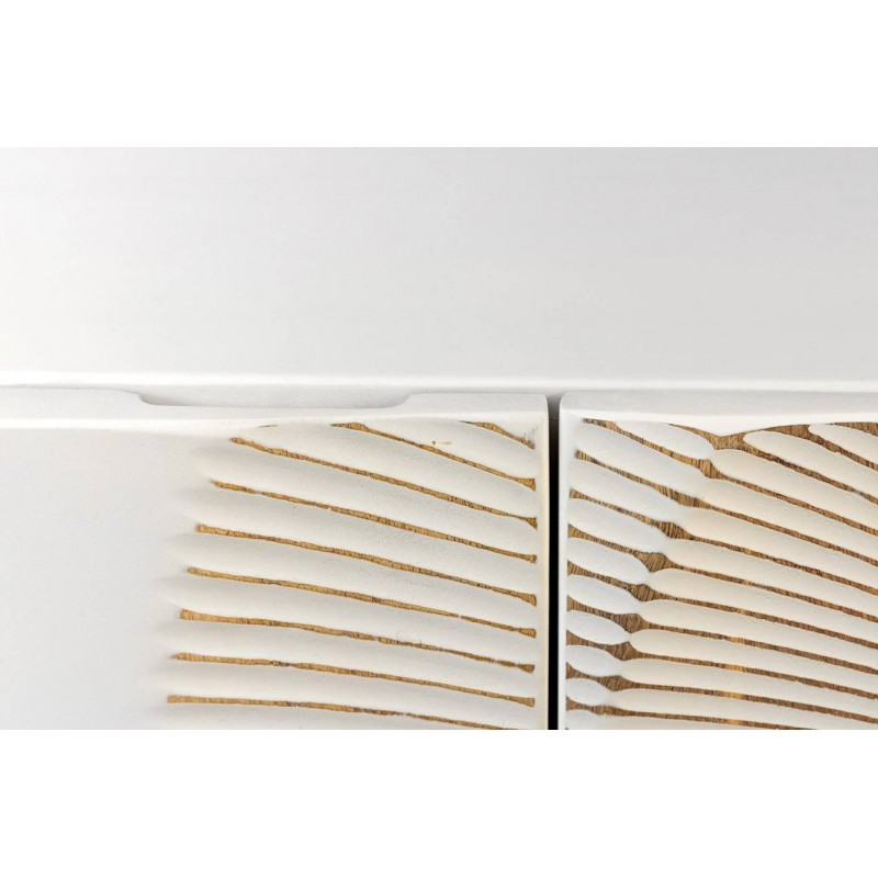 SZAFKA RTV ART DECO 200X38 CM MANGO BIELONE Szafka RTV ART DECO to idealne rozwiązanie do każdego wnętrza w stylu nowoczesnym, gdzie mebel ten dzięki swojej niesamowitej strukturze doda przestrzeni charakteru i oryginalnego wykończenia. Mebel ten wykonany został z litego drewna mango, którego bielony front zdobi dekoracja optyczno-geometryczna 3D z...