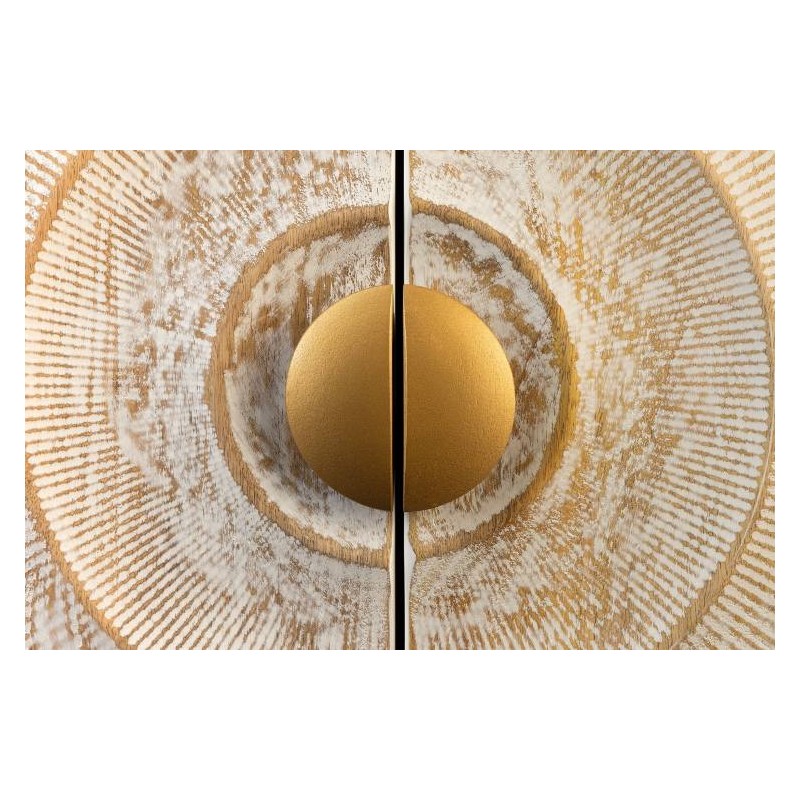 | Szczegóły wykończenia | dekoracyjny wzór na frontowych drzwiczkach z unikatowymi geometrycznymi kołami wraz z ręcznie robionymi przetarciami i złotymi zdobieniami, dzięki czemu każdy egzemplarz jest unikatowy i wyjątkowy. |