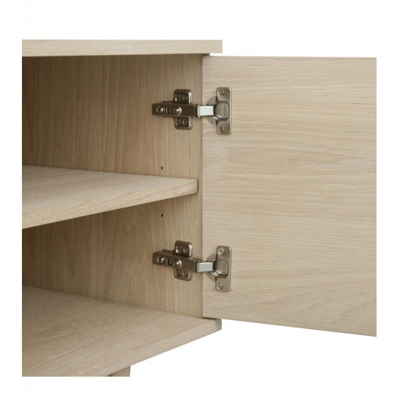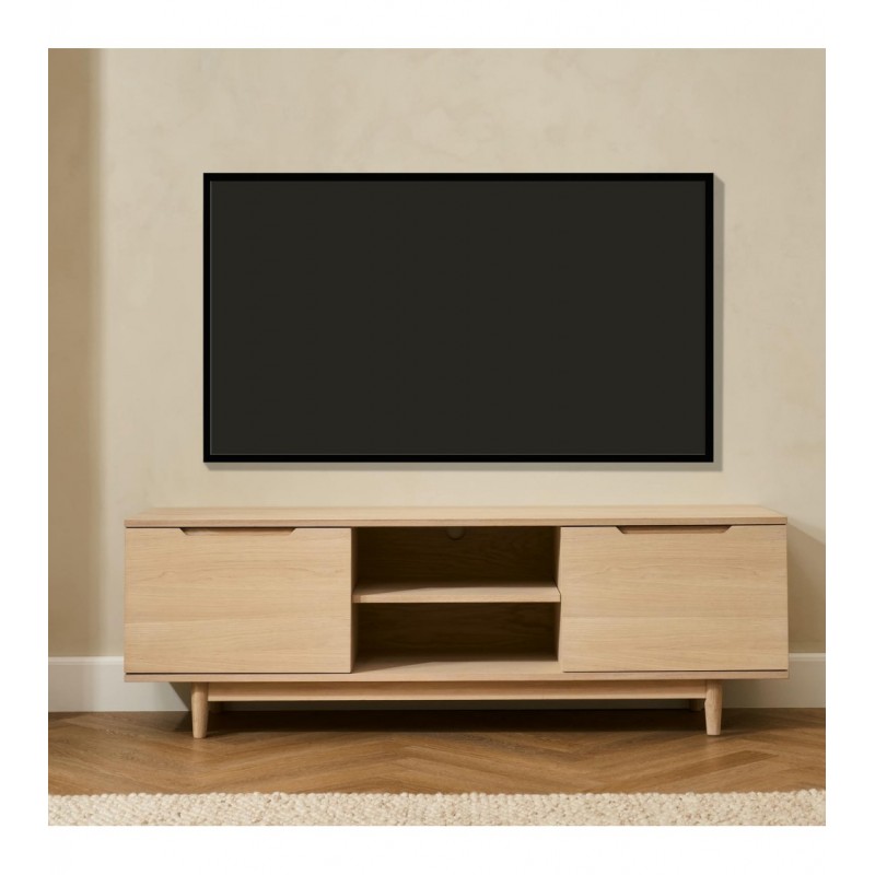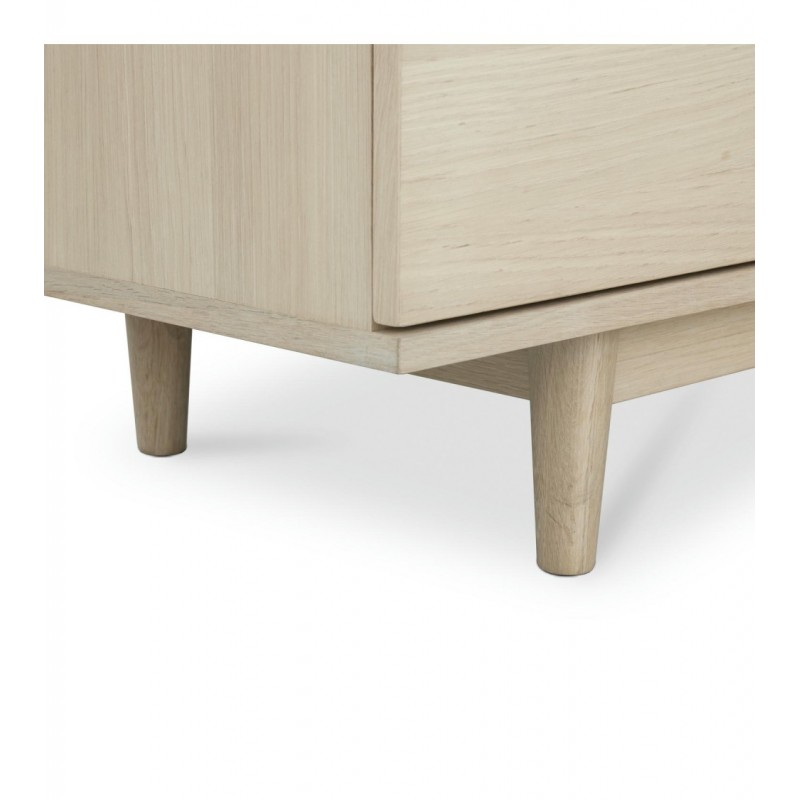 Szafka RTV KERTEMINDE to idealne rozwiązanie do każdego wnętrza w stylu nowoczesnym, dodająca przestrzeni niezwykle naturalnego wykończenia. Została wykonana z wysokiej jakości materiałów, takich jak lite drewno dębowe, fornir dębowy oraz płyta MDF, zapewniająca trwałość i elegancki wygląd. Powierzchnie wykończono olejem na bazie bielonego forniru dębowego, który nadaje ciepła i wyrafinowania każdemu wnętrzu harmonijnie komponując się z różnymi stylami aranżacji. Szafka RTV wyposażona jest w system cichego zamykania, co sprawia, że jej użytkowanie jest wyjątkowo funkcjonalne i komfortowe. Frezowane uchwyty podkreślają nowoczesny i elegancki design mebla. Wyposażona jest w dwie wąskie otwarte półki oraz dwie pojemne szafki zamykane, dzięki czemu całość mebla bez problemu pomieści najpotrzebniejsze przedmioty codziennego użytku w tym urządzenia elektroniczne, oferując tym samym dużą powierzchnię do przechowywania. Zaletą tej szafki jest funkcjonalność, wytrzymałość oraz łatwość czyszczenia, ponadto wyróżnia się swoją wyrazistością, kolorem i strukturą powodując, że każdy egzemplarz jest unikatowy. Zaprojektowana jest niewątpliwie z dużą precyzją, dzięki zachowaniu naturalnej oryginalności drzewa zarówno słojów jak i sęków, które prezentują się fenomenalnie, nadając tym samym meblowi oryginalnego charakteru. Szafka RTV KERTEMINDE sprawdzi się znakomicie w każdym nowoczesnym salonie, gdzie stanie się nie tylko funkcjonalnym meblem, ale także przepiękną dekoracją, dzięki której pomieszczenie nabierze ciepła i naturalnego efektu.
