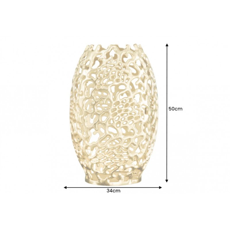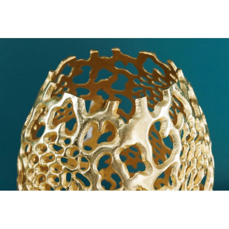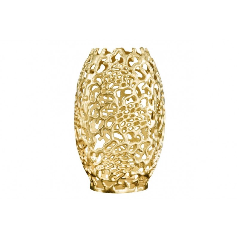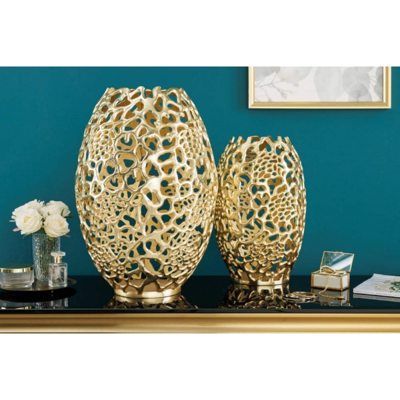 Wazon ABSTRACT LEAF to znakomity dodatek do każdego pomieszczenia, który sprawdzi się idealnie we wnętrzach w stylu nowoczesnym oraz glamour, gdzie dzięki swojej formie doda przestrzeń niezwykłego charakteru. Wyjątkowość wazonu stanowi jego kształt oraz wygląd odzwierciedlający pajęczynę, wzór ten wykonywany jest za pomocą frezowania ręcznego ze stopu metalowo-aluminiowego, dzięki czemu kusi swoją unikalnością oraz niepowtarzalnością. Złote wykończenie dodaje mu luksusowego charakteru, a abstrakcyjna forma przyciąga wzrok i wprowadza do wnętrza nutę nowoczesnej elegancji. Wazon ABSTRACT LEAF sprawdzi się znakomicie w każdym wnętrzu, gdzie stanie się nie tylko piękną ozdobą, ale także funkcjonalnym elementem pozwalającym na prezentowanie kwiatów czy innych dekoracji.