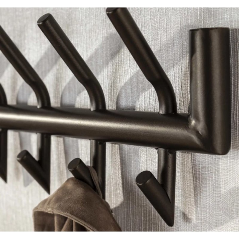 WIESZAK LARA 78 CM METALOWY BRĄZOWY Ten industrialny wieszak ścienny to połączenie prostoty oraz elegancji. Wykonany z wytrzymałej stali malowanej proszkowo w odcieniu brązowym, wprowadza do wnętrza akcent loftowego charakteru. Mebel wyposażono w osiem solidnych, spawanych haczyków, które umożliwiają zawieszanie odzieży wierzchniej z obu stron, tworząc...