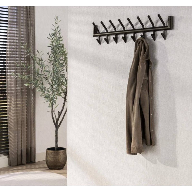 Ten industrialny wieszak ścienny to połączenie prostoty oraz elegancji. Wykonany z wytrzymałej stali malowanej proszkowo w odcieniu brązowym, wprowadza do wnętrza akcent loftowego charakteru. Mebel wyposażono w osiem solidnych, spawanych haczyków, które umożliwiają zawieszanie odzieży wierzchniej z obu stron, tworząc łącznie szesnaście funkcjonalnych miejsc do przechowywania. Bez wątpienia jego ścienne mocowanie za pomocą 2 otworów na śruby pozwala zaoszczędzić miejsce na podłodze przez co czyni go niezwykle praktycznym. Kolor brązowy idealnie współgra z pozostałymi elementami konstrukcji, podkreślając tym samym charakter mebla. LARA to doskonały wybór dla osób ceniących nowoczesne rozwiązania z nutą industrialnej estetyki. Wieszak ten będzie nie tylko funkcjonalnym miejscem do przechowywania, ale także wyrazistym akcentem dekoracyjnym w każdym pomieszczeniu.