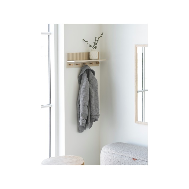 Wieszak ścienny Rocca to praktyczne i estetyczne rozwiązanie do organizacji przestrzeni w przedpokoju, sypialni lub garderobie. Minimalistyczna forma w połączeniu z beżowym kolorem sprawia, że doskonale wpisuje się w nowoczesne, skandynawskie i japandi wnętrza.