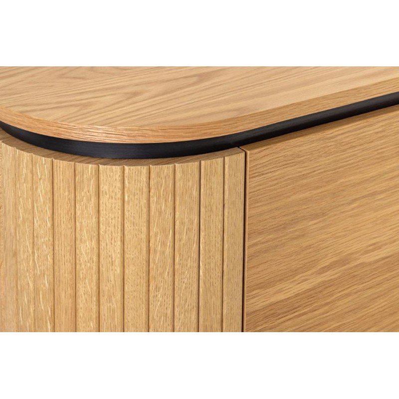 KOMODA LANGLEY 160X40 CM DĄB Komoda Langley sprawdzi się doskonale do wnętrz klasycznych, skandynawskich, minimalistycznych. Wykonany w prostokątnej formie z zaokrąglonymi narożnikami, komoda łączy w sobie nowoczesną i naturalną estetykę, pasując do różnych stylów wnętrz. Dekor z listew, okrągły charakter i lakierowane akcenty dębowe definiują...
