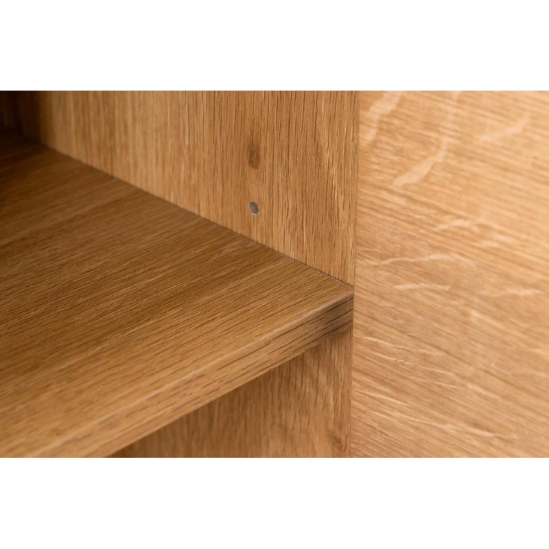 | Szczegóły wykończenia | na froncie zastosowano podłużne pionowe listwy dekoracyjne przypominające lamele, mebel wykonany jest z dużą precyzją, dzięki zachowaniu i odwzorcowaniu naturalnej oryginalności zarówno słojów jak i sęków |