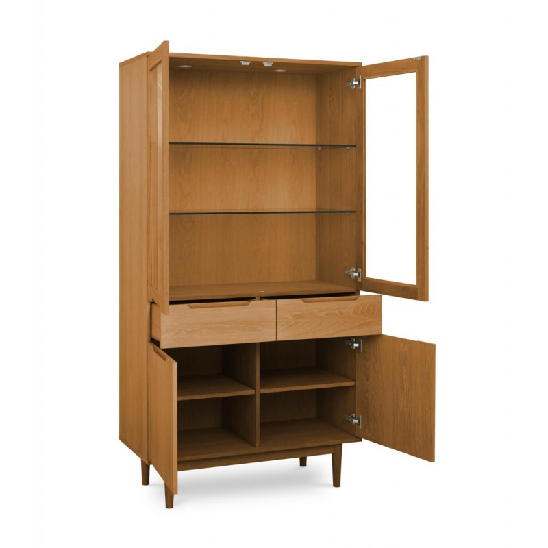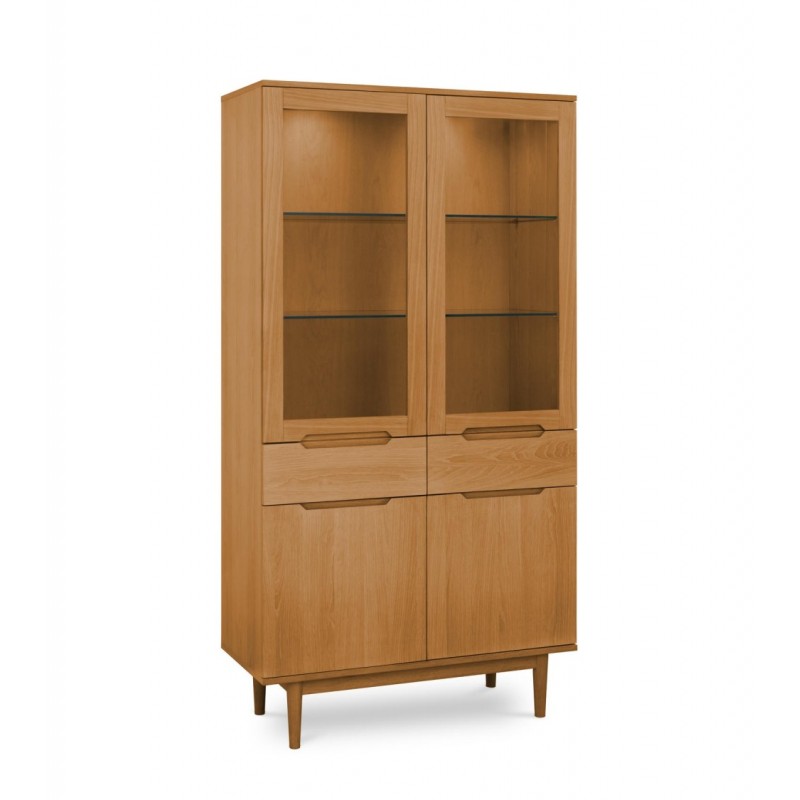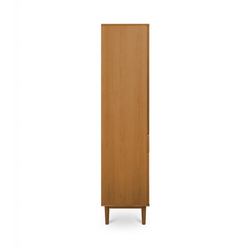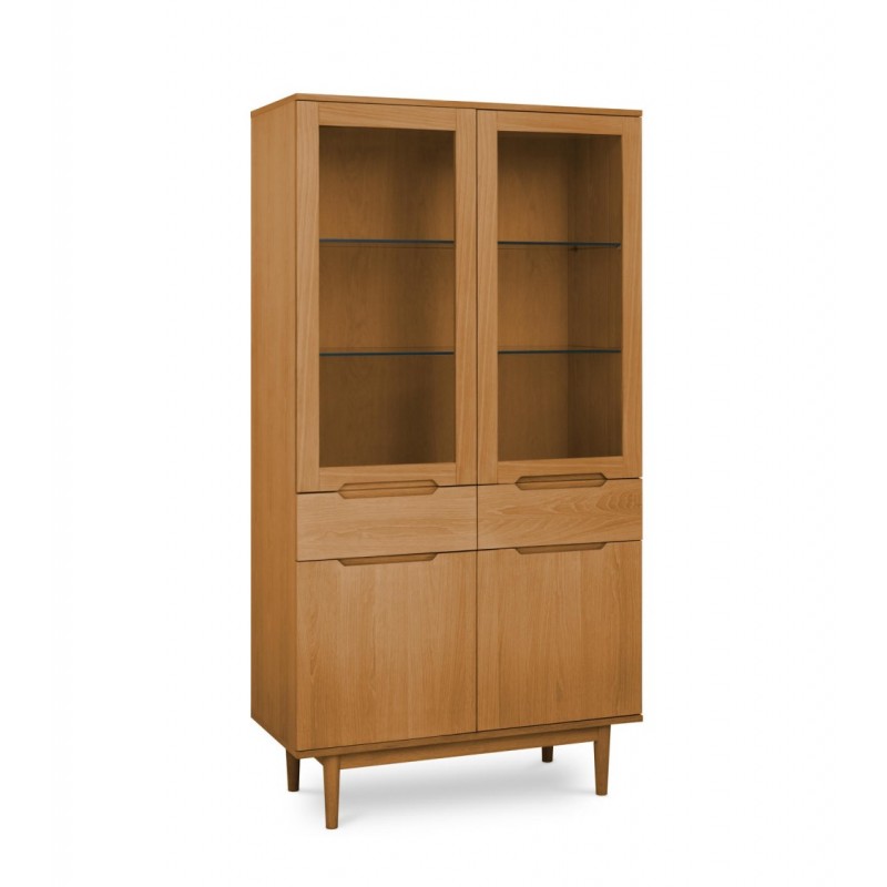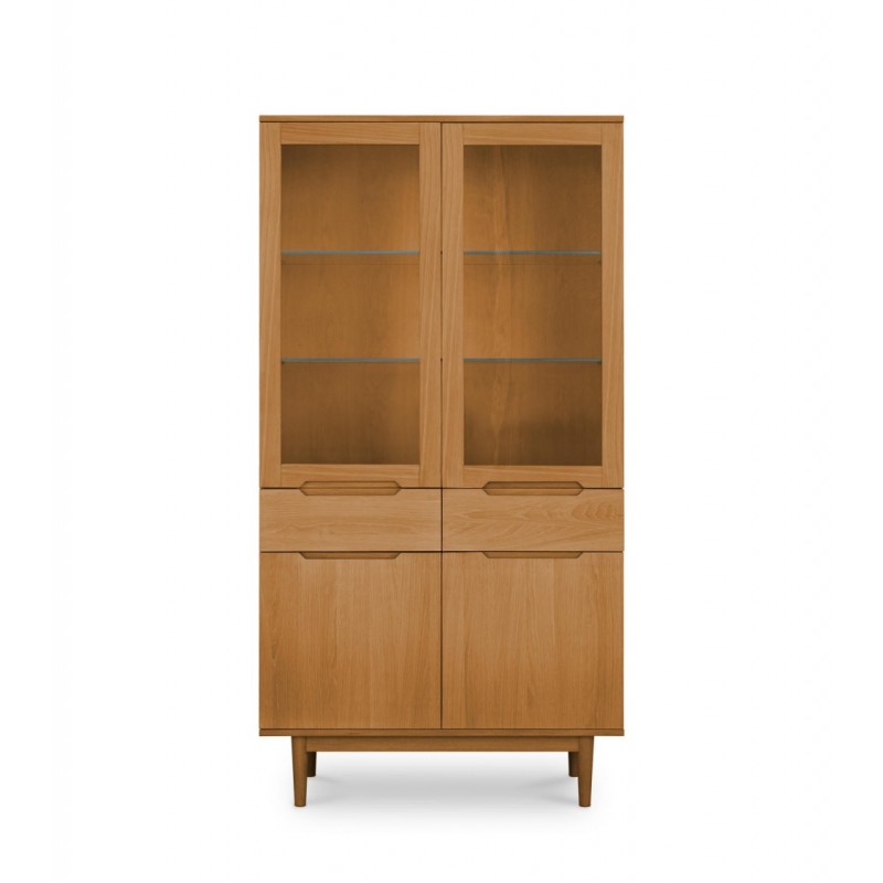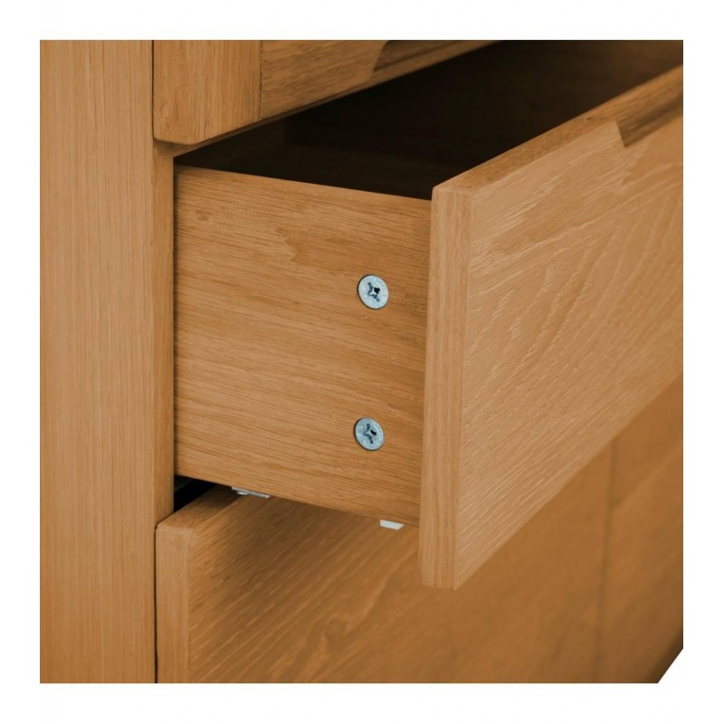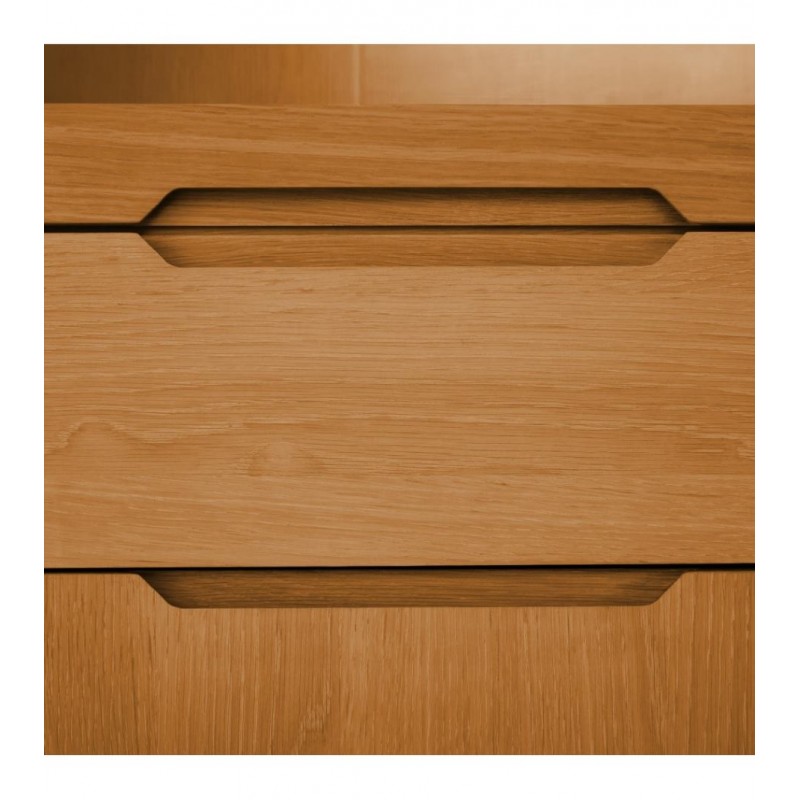Witryna KERTEMINDE to idealne rozwiązanie do każdego wnętrza w stylu nowoczesnym, dodająca przestrzeni niezwykle naturalnego wykończenia. Została wykonana z wysokiej jakości materiałów, takich jak lite drewno dębowe, fornir dębowy oraz płyta MDF, zapewniająca trwałość i elegancki wygląd. Powierzchnie wykończono naturalnym olejem na bazie forniru dębowego, który nadaje ciepła i wyrafinowania każdemu wnętrzu harmonijnie komponując się z różnymi stylami aranżacji. Witryna ta wyposażona jest w system cichego zamykania, co sprawia, że jej użytkowanie jest wyjątkowo funkcjonalne i komfortowe. Frezowane uchwyty podkreślają nowoczesny i elegancki design mebla. Wyposażona jest w dwie szuflady, dwie potrójne pojemne przeszklone oraz zamykane szafki, dzięki czemu całość mebla bez problemu pomieści najpotrzebniejsze przedmioty codziennego użytku, oferując tym samym dużą powierzchnię do przechowywania. Zaletą tego mebla jest funkcjonalność, wytrzymałość oraz łatwość czyszczenia, ponadto wyróżnia się swoją wyrazistością, kolorem i strukturą powodując, że każdy egzemplarz jest unikatowy. Zaprojektowana jest niewątpliwie z dużą precyzją, dzięki zachowaniu naturalnej oryginalności drzewa zarówno słojów jak i sęków, które prezentują się fenomenalnie, nadając tym samym meblowi oryginalnego charakteru. Witryna KERTEMINDE sprawdzi się znakomicie w każdym nowoczesnym salonie, gdzie stanie się nie tylko funkcjonalnym meblem, ale także przepiękną dekoracją, dzięki której pomieszczenie nabierze ciepła i naturalnego efektu.