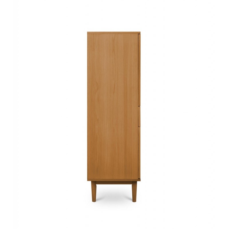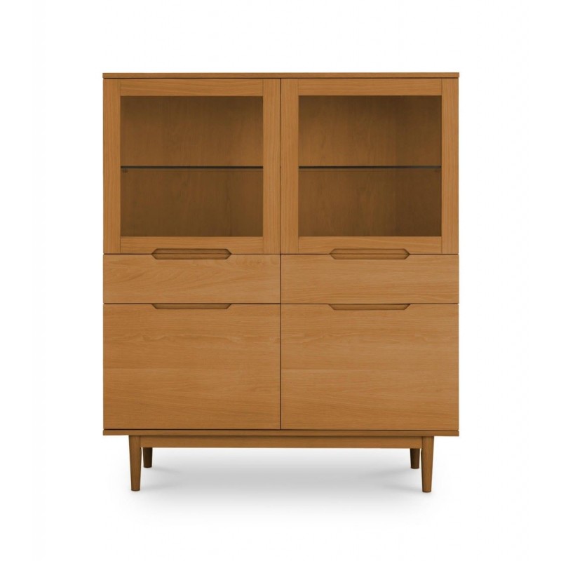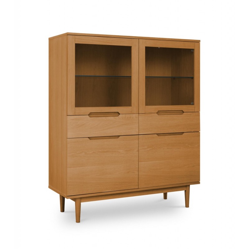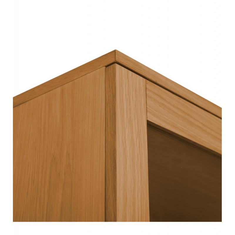 Witryna KERTEMINDE to idealne rozwiązanie do każdego wnętrza w stylu nowoczesnym, dodająca przestrzeni niezwykle naturalnego wykończenia. Została wykonana z wysokiej jakości materiałów, takich jak lite drewno dębowe, fornir dębowy oraz płyta MDF, zapewniająca trwałość i elegancki wygląd. Powierzchnie wykończono naturalnym olejem na bazie forniru dębowego, który nadaje ciepła i wyrafinowania każdemu wnętrzu harmonijnie komponując się z różnymi stylami aranżacji. Witryna ta wyposażona jest w system cichego zamykania, co sprawia, że jej użytkowanie jest wyjątkowo funkcjonalne i komfortowe. Frezowane uchwyty podkreślają nowoczesny i elegancki design mebla. Wyposażona jest w dwie szuflady oraz dwie podwójne pojemne przeszklone i zamykane szafki, dzięki czemu całość mebla bez problemu pomieści najpotrzebniejsze przedmioty codziennego użytku, oferując tym samym dużą powierzchnię do przechowywania. Zaletą tego mebla jest funkcjonalność, wytrzymałość oraz łatwość czyszczenia, ponadto wyróżnia się swoją wyrazistością, kolorem i strukturą powodując, że każdy egzemplarz jest unikatowy. Zaprojektowana jest niewątpliwie z dużą precyzją, dzięki zachowaniu naturalnej oryginalności drzewa zarówno słojów jak i sęków, które prezentują się fenomenalnie, nadając tym samym meblowi oryginalnego charakteru. Witryna KERTEMINDE sprawdzi się znakomicie w każdym nowoczesnym salonie, gdzie stanie się nie tylko funkcjonalnym meblem, ale także przepiękną dekoracją, dzięki której pomieszczenie nabierze ciepła i naturalnego efektu.