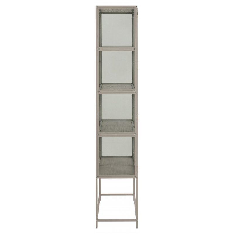 Witryna SEAFORD to doskonałe rozwiązanie do wnętrz w stylu nowoczesnym, gdzie dzięki swojej formie i strukturze doda przestrzeni unikatowego wyglądu. Podstawę mebla w całości wykonano z malowanego proszkowo metalu w kolorze szarym, którego konstrukcja podkreśla jego minimalistyczny design. Ta niezwykle przestronna oraz funkcjonalna witryna składa się z czterech równo ułożonych półek znajdujących się za przeszklonymi drzwiczkami, co sprawia, że całość zyskuje spójną, jednolitą i nowoczesną estetykę. SEAFORD bez wątpienia sprawdzi się w każdym salonie oraz gabinecie, stając się zarówno niesamowitą dekoracją jak również funkcjonalnym praktycznym dodatkiem oraz idealnym miejscem do wyeksponowania książek, ulubionych dekoracji oraz zdjęć rodzinnych. Całość sprawia, że wygląda bardzo stylowo i elegancko, a swoją wyrazistością doskonale wzbogaci każde wnętrze urządzone w stylu nowoczesnym.