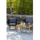 Chania - Modny zestaw sof, który stawia na wygodę i przyciągający wzrok design. Zestaw sof składa się z dwuosobowej sofy, dwóch foteli z ramą, w tym grubych, trwałych, ciemnoszarych poduszek. Sofa zawiera również niski stolik kawowy wykonany w całości z pięknej akacji. Zestaw sof wykonany jest z ramy z aluminium i nóg z akacji, a tył i boki są oplecione...