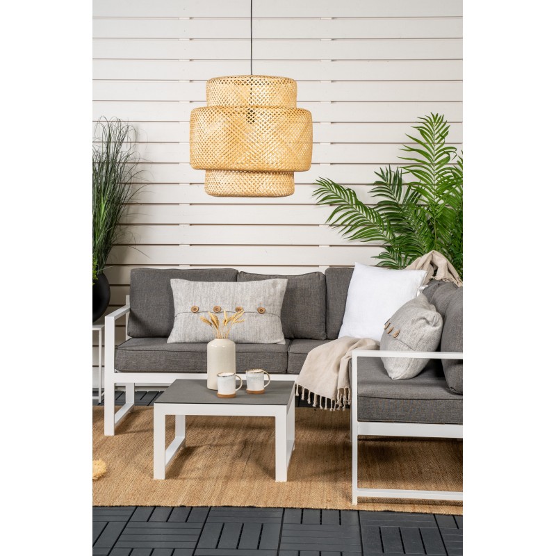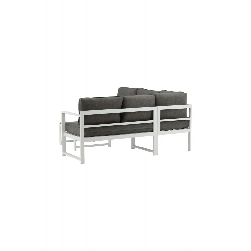 Salvador to stylowa grupa sof w przyjemnym szarym kolorze, która zachwyca przemyślanym ogólnym projektem. Grupa sof składa się z trzyosobowej sofy z podziałem i stolika kawowego. Wykonana z białego malowanego proszkowo metalu i aluminium - łatwa w obsłudze i trwała do użytku na zewnątrz! Do grupy sof dołączone są miękkie, jasnoszare poduszki. Sofa składa...