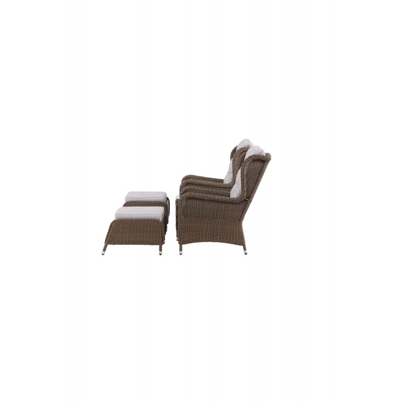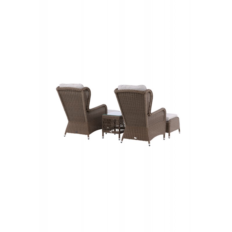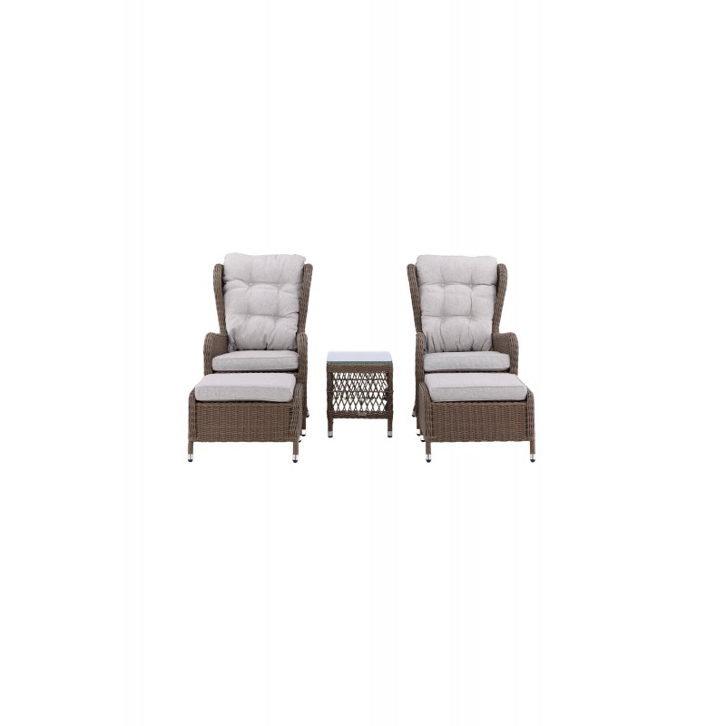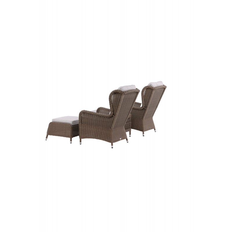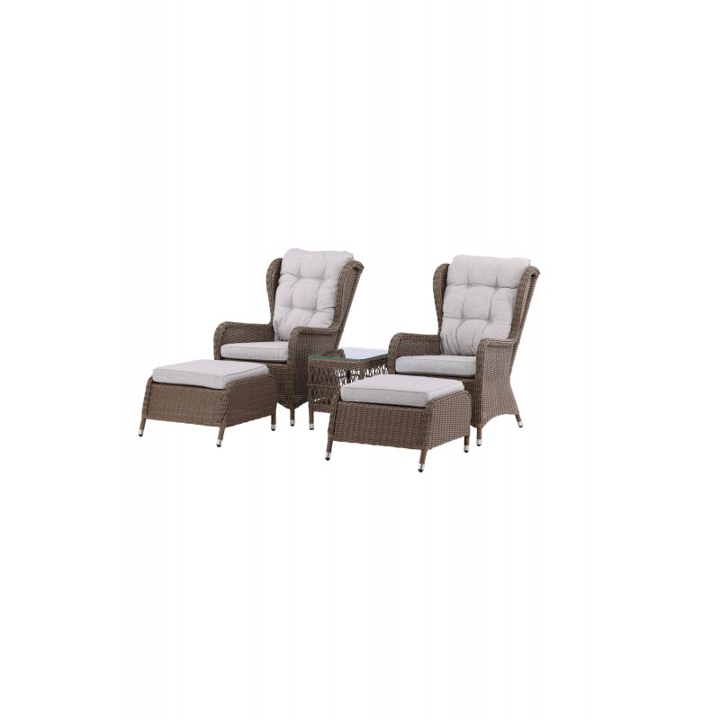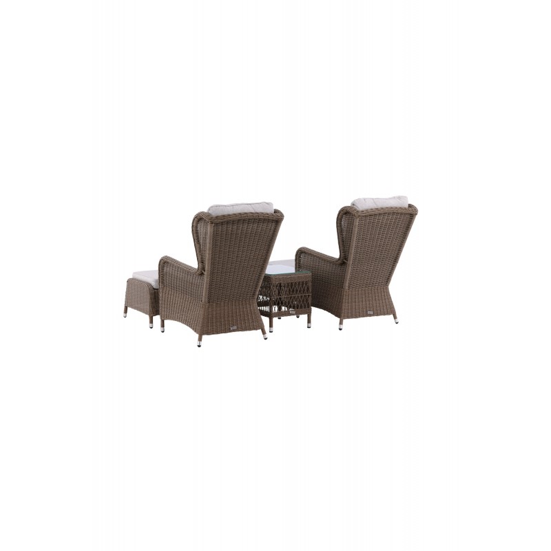 Washington to ekskluzywny zestaw wypoczynkowy łączący ponadczasowy design i fantastyczny komfort na patio lub tarasie. Zestaw wypoczynkowy składa się z dwóch foteli, dwóch podnóżków z miękkimi, piaskowymi, piklowanymi poduszkami i stolika bocznego ze szklanym blatem. Zestaw wypoczynkowy wykonany jest z aluminiowej ramy i naturalnego, kolorowego tworzywa sztucznego - tak samo trwałego, jak stylowego! Porady dotyczące pielęgnacji: Konstrite to tworzywo sztuczne, które idealnie nadaje się do naszego skandynawskiego klimatu. Materiał jest odporny na promieniowanie UV i wytrzymuje warunki atmosferyczne i wiatr. Fakt, że jest odporny na promieniowanie UV oznacza, że meble nie blakną, jednak zawsze zalecamy przechowywanie mebli pod osłoną mebli lub w innym suchym i chłodnym miejscu - aby przedłużyć ich żywotność.